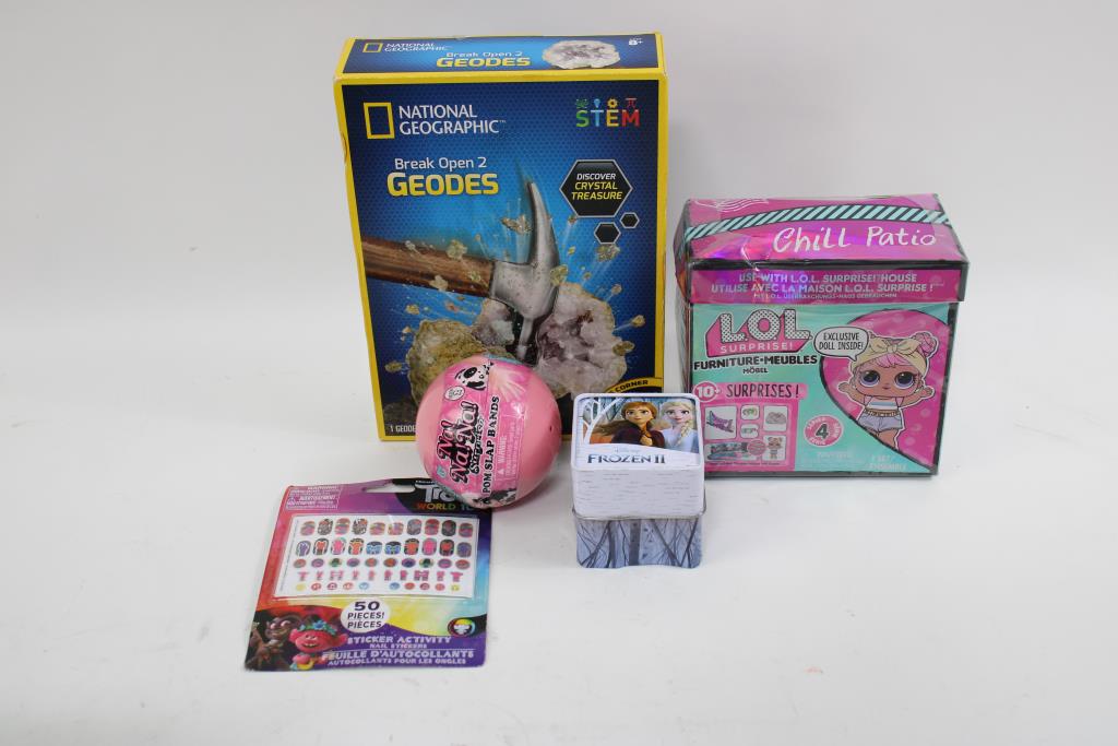 Lol! Surprise Furniture Toy, Trolls World Tour Sticker Activies Nail Stickers, National Geographic Break Open 2 Geodes And More