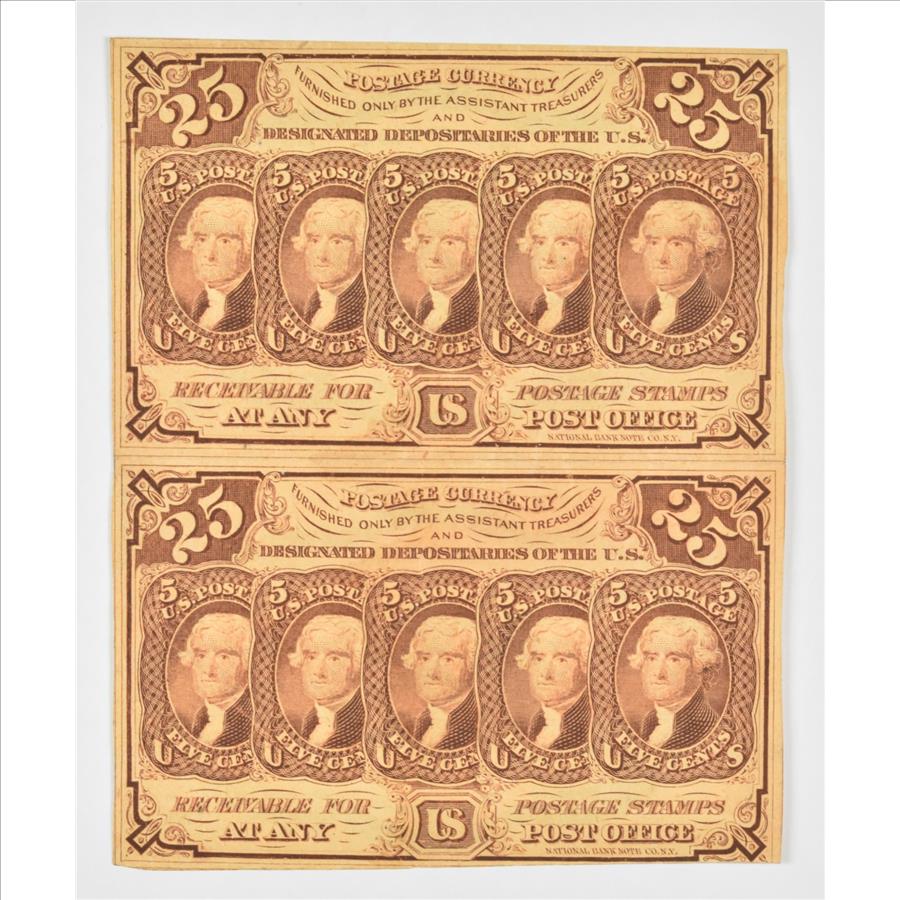 Lot (2) Uncut 25 Cents United States Postage Currency