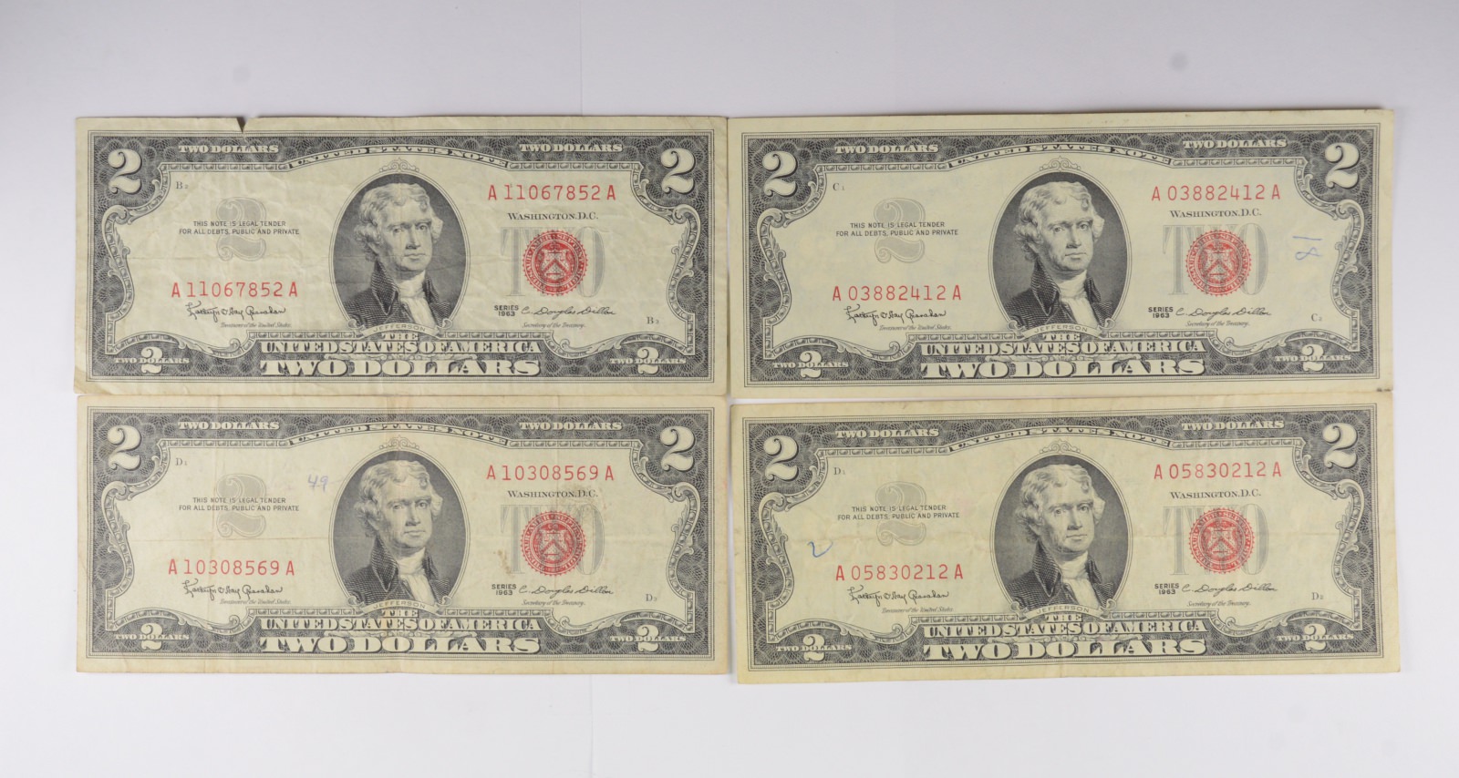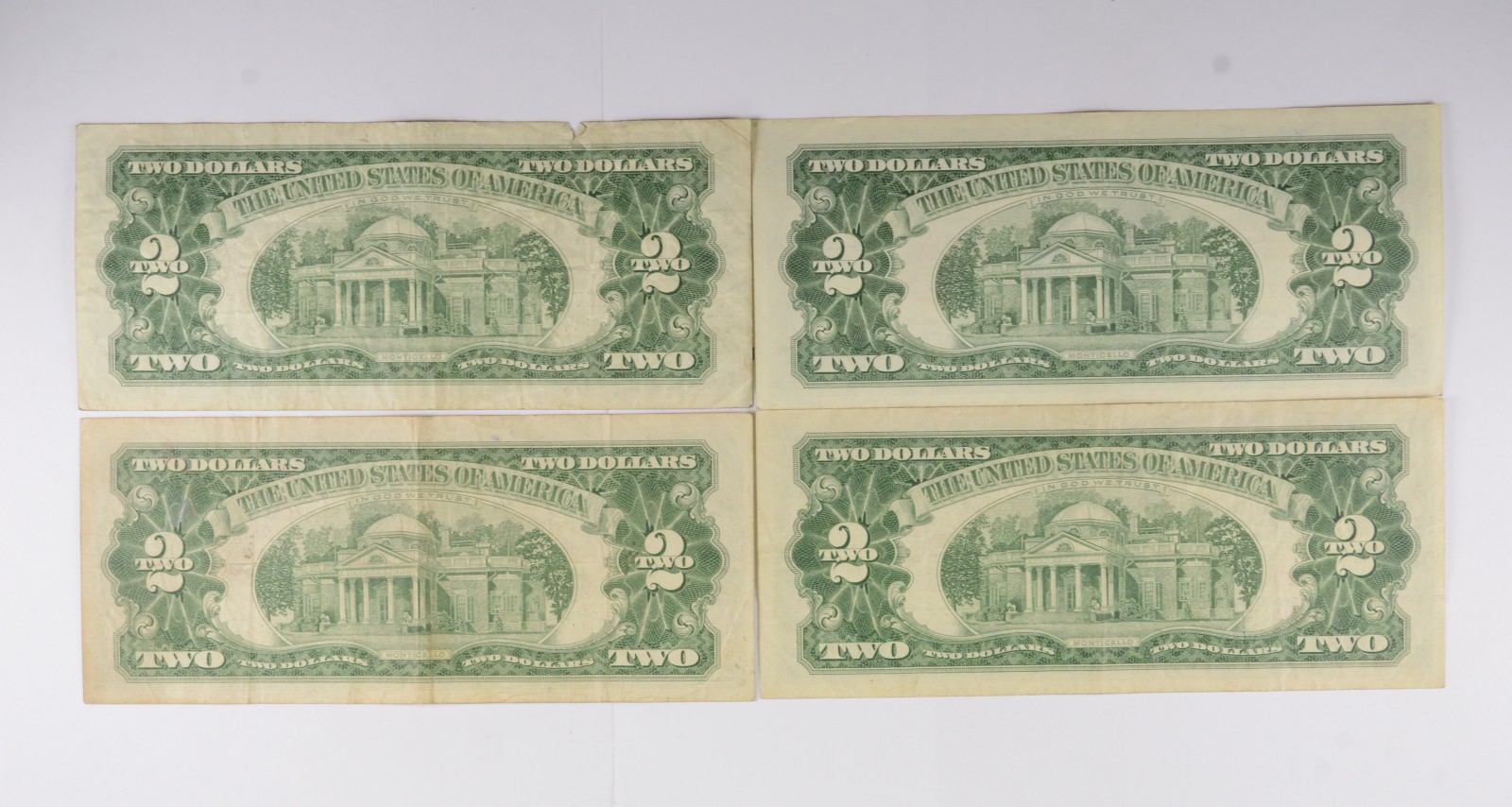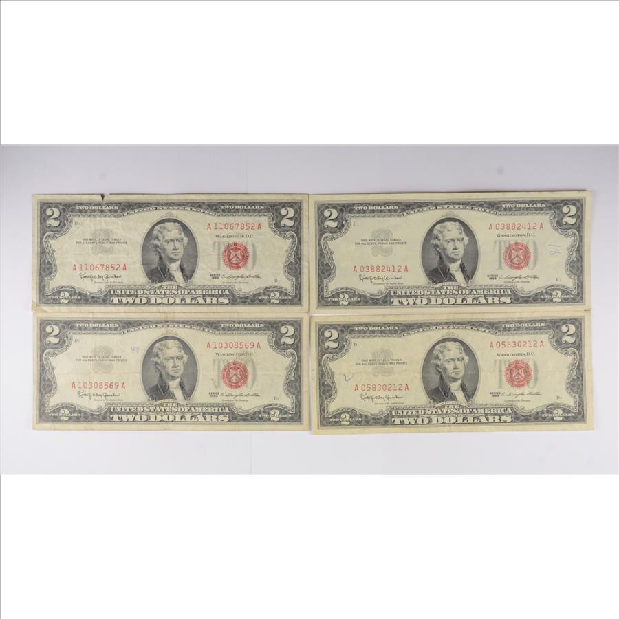 Lot 4 Red Seal $2 US 1953 or 1963 Notes - Currency Collection Legal Tender