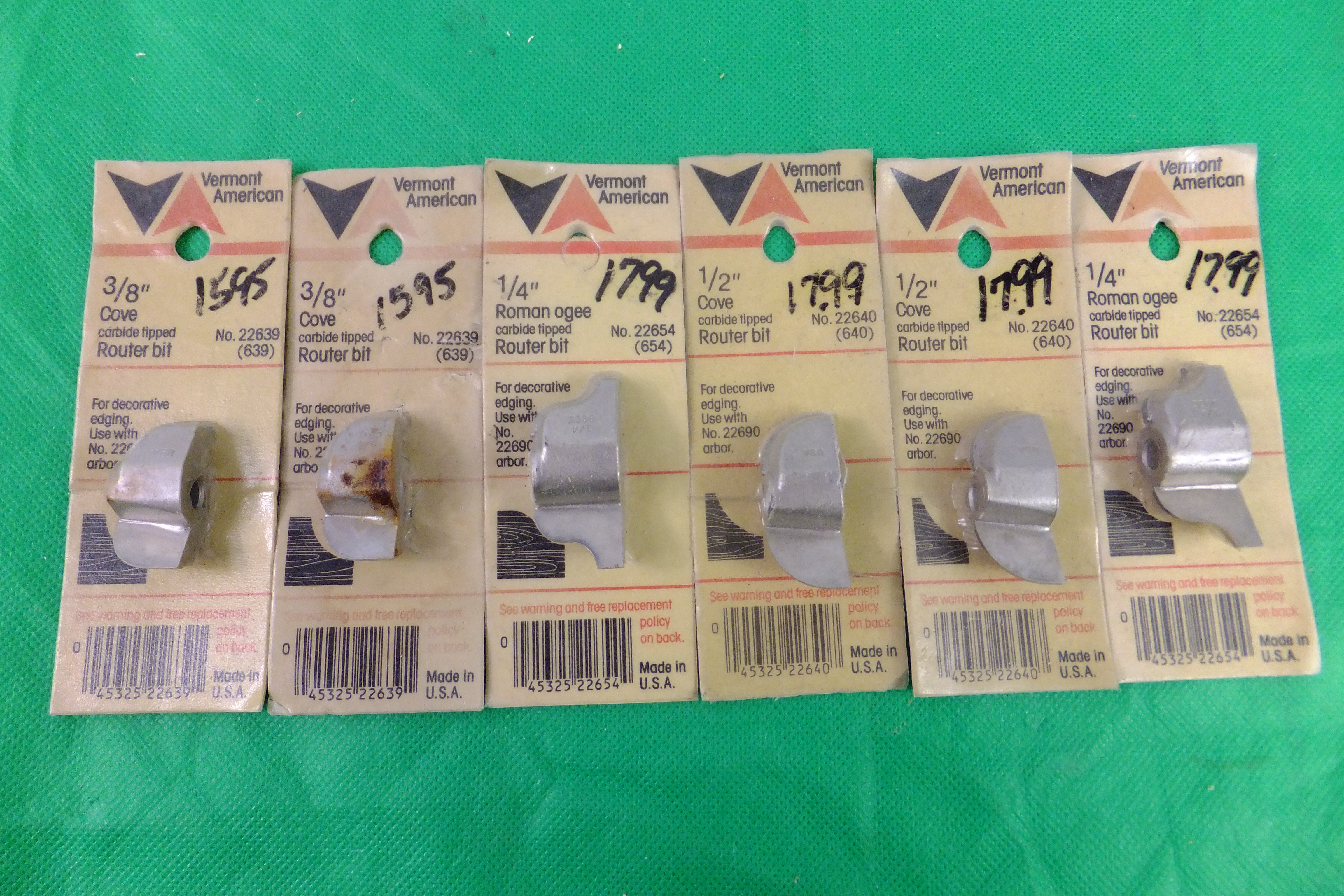 Lot O 6 Vermont American Router Bits 16-18 Retail;