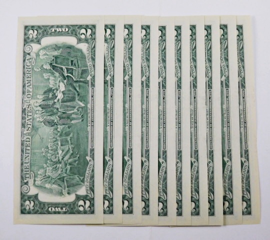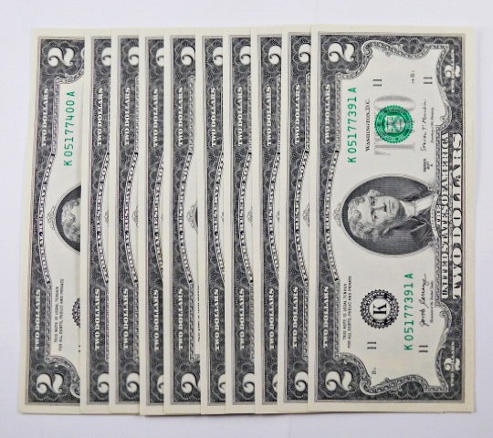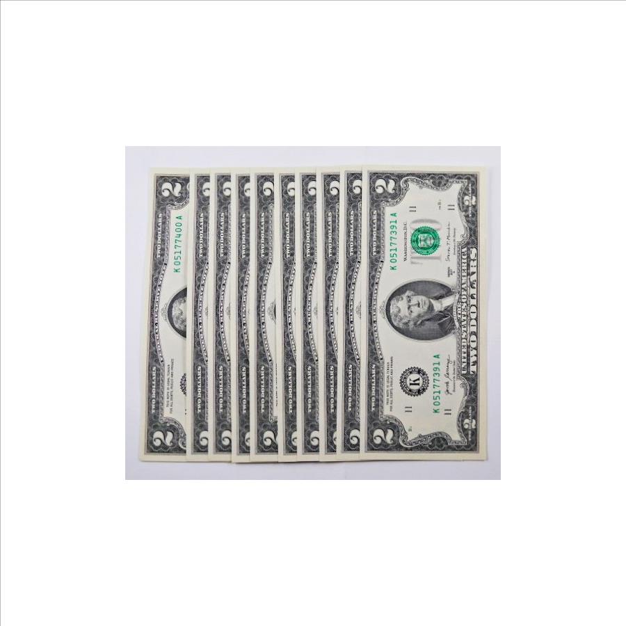 Lot of 10 Series 2017A $2 Federal Reserve Notes in CONSECUTIVE NUMBERS*Dallas, TX*Crisp Uncirculated