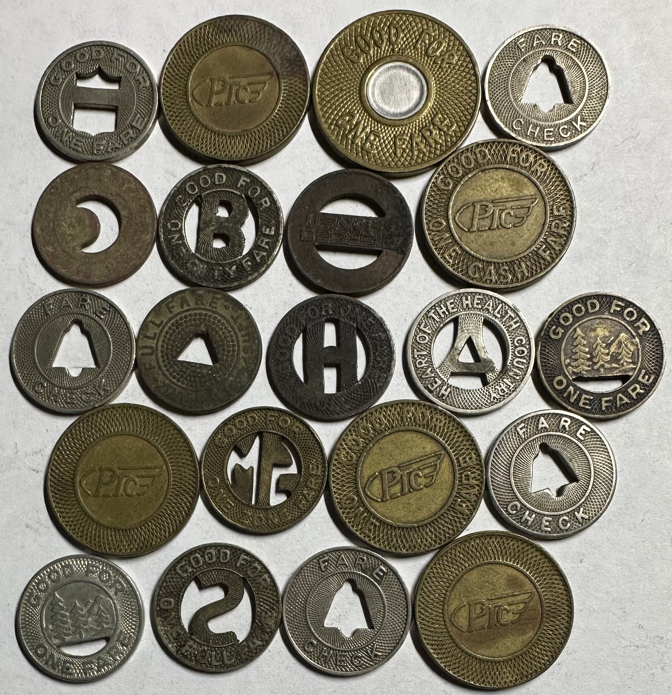 >Lot of 21 Transit Tokens - Great Collection
