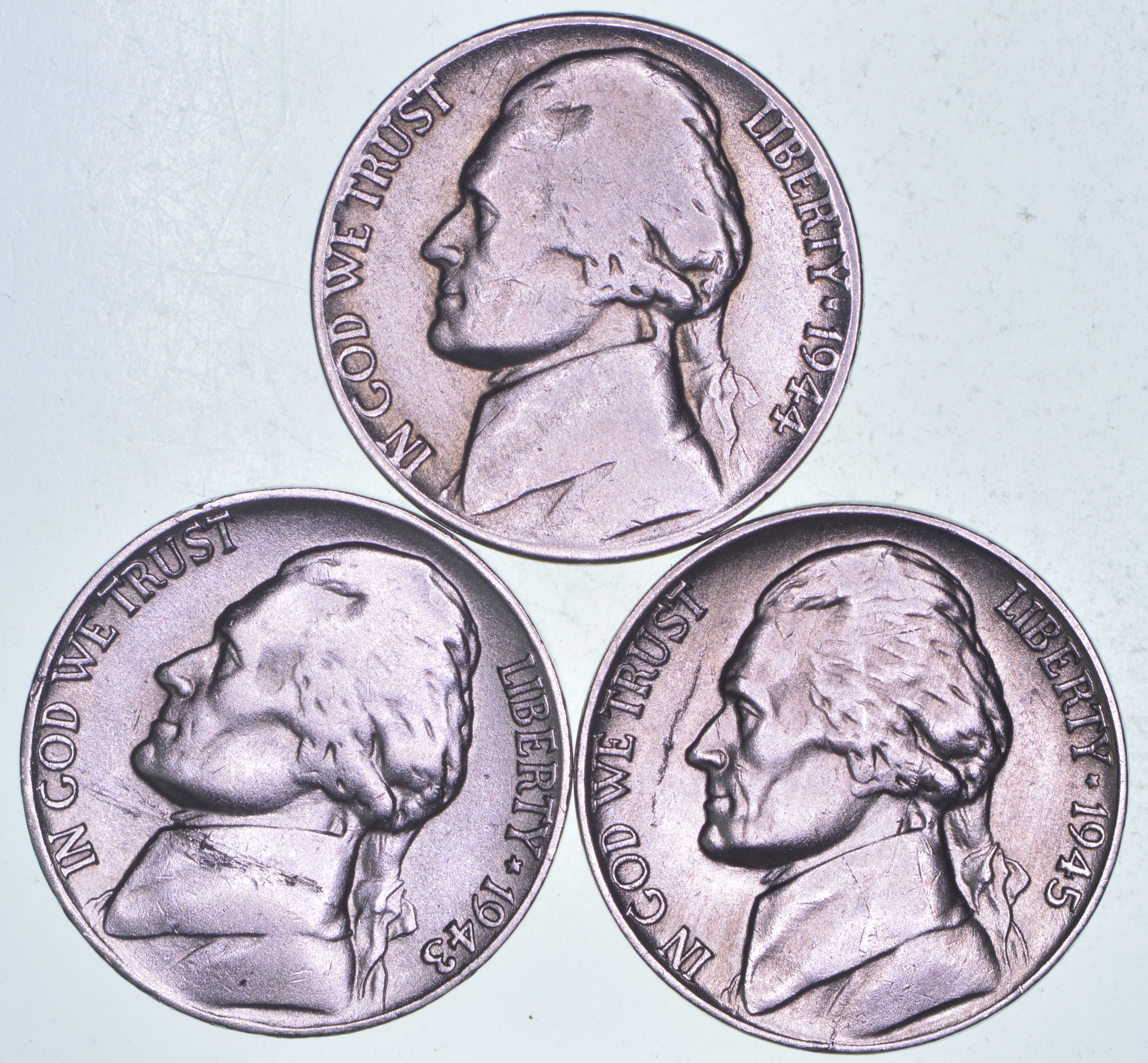 Lot of 3 WWII SILVER - Higher Grade Wartime Nickels - High Redbook Value! - Made of silver for War Efforts