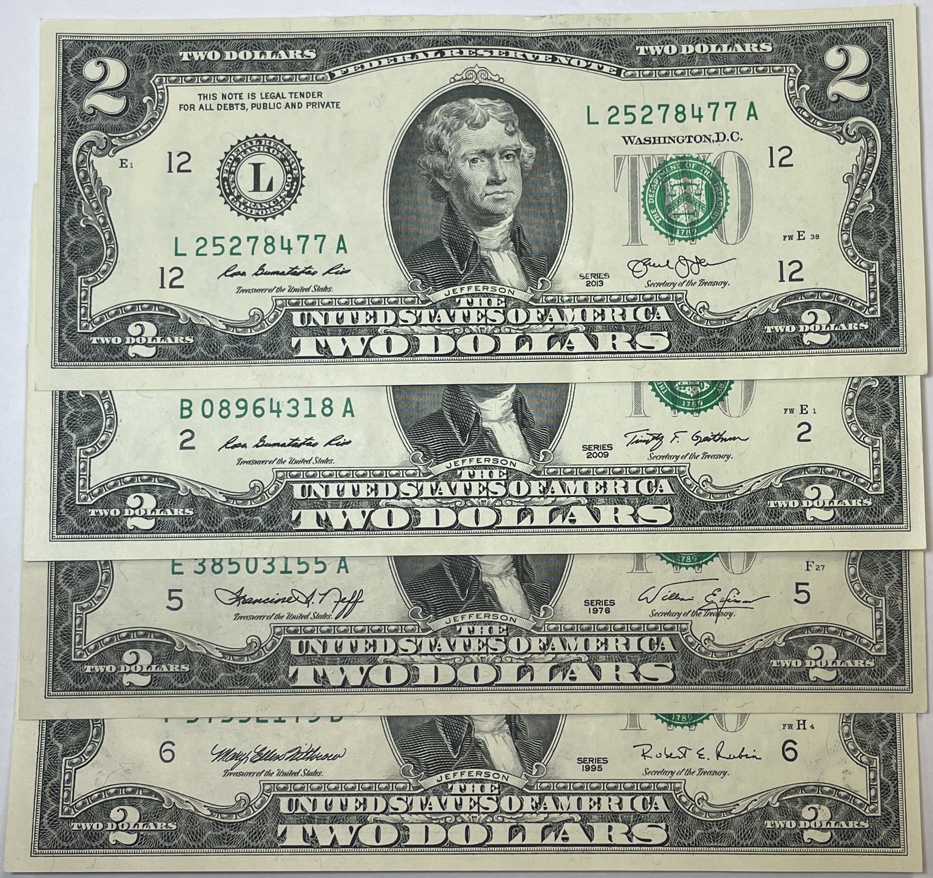 Lot of (4) Different Series $2 Federal Reserve Notes - 1976, 1995, 2009 & 2013 - Crisp Paper