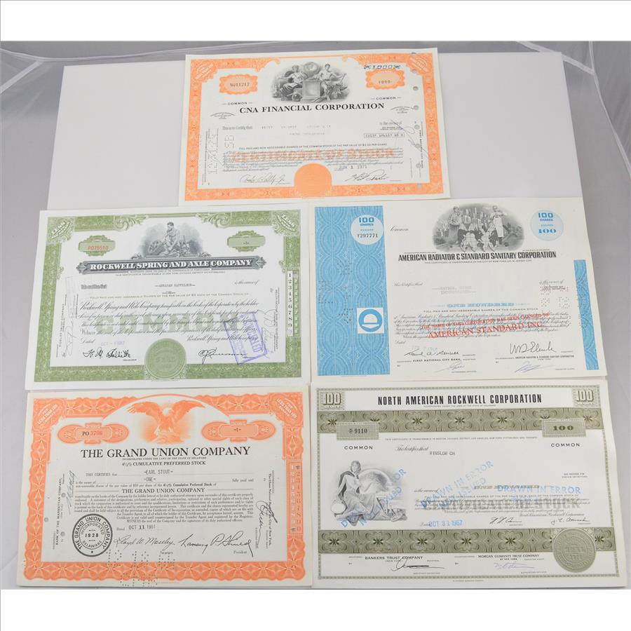 Lot of 5 Different Vintage Stock Certificates - Very Cool Art - Financial History