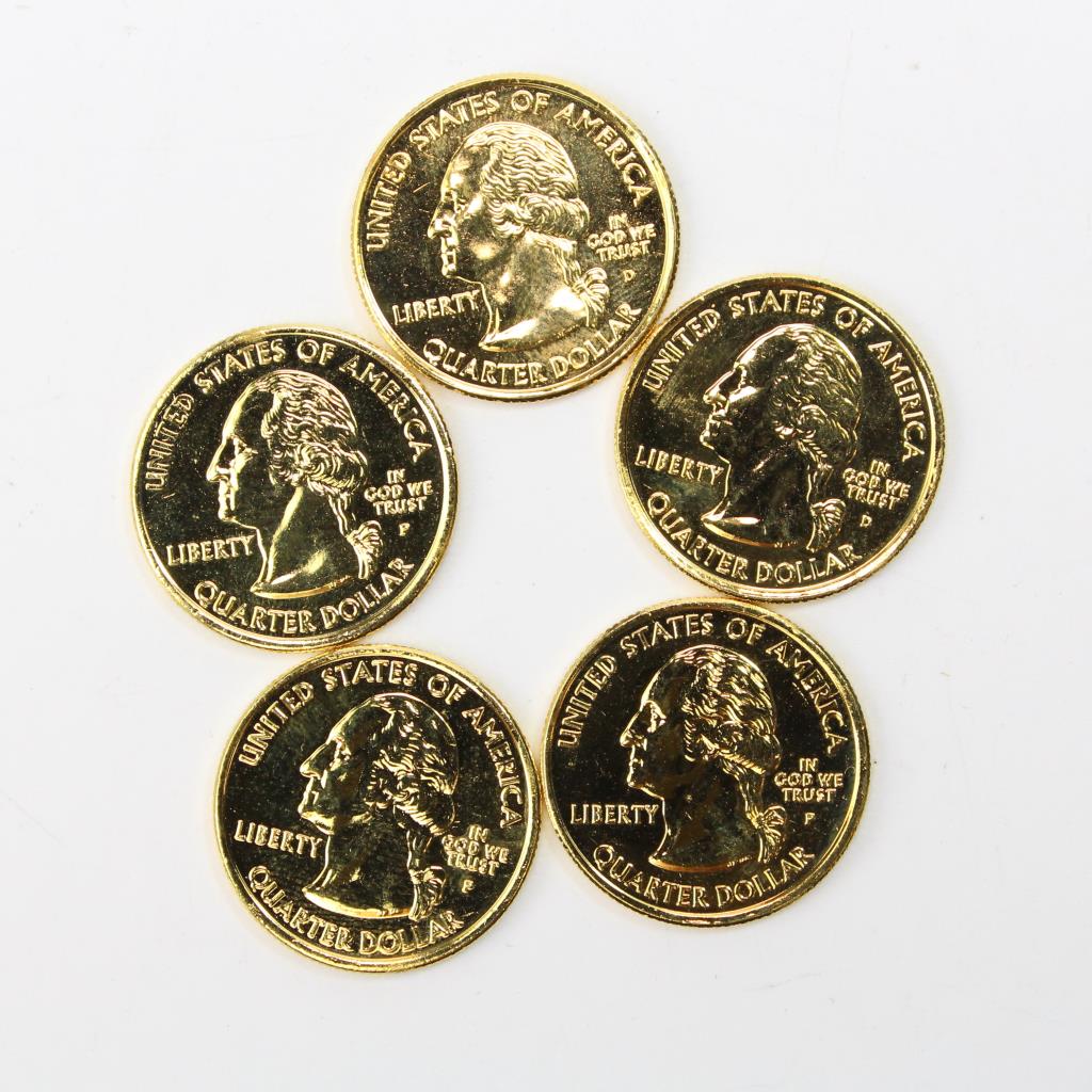 Lot Of 5 Gold Plated U.S. State Quarters
