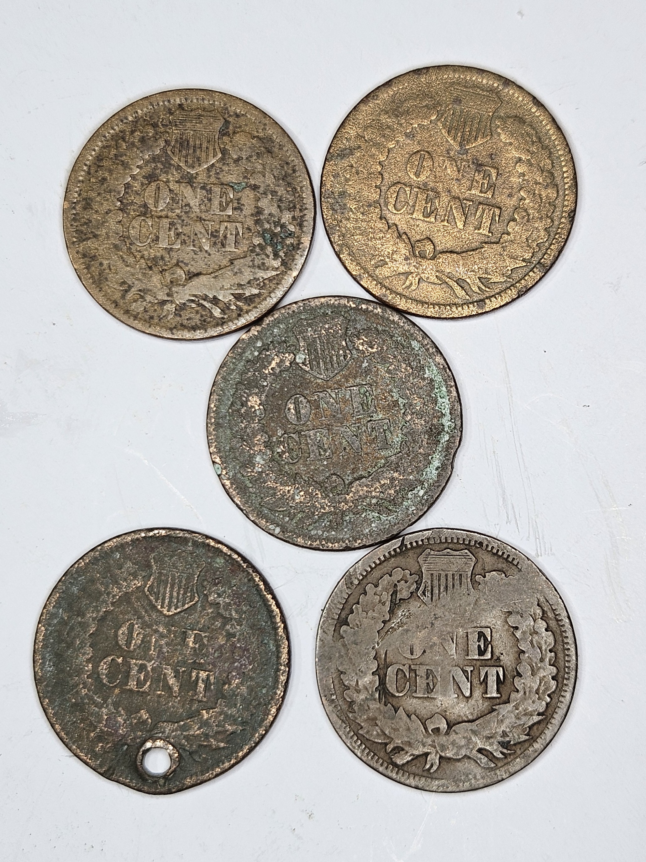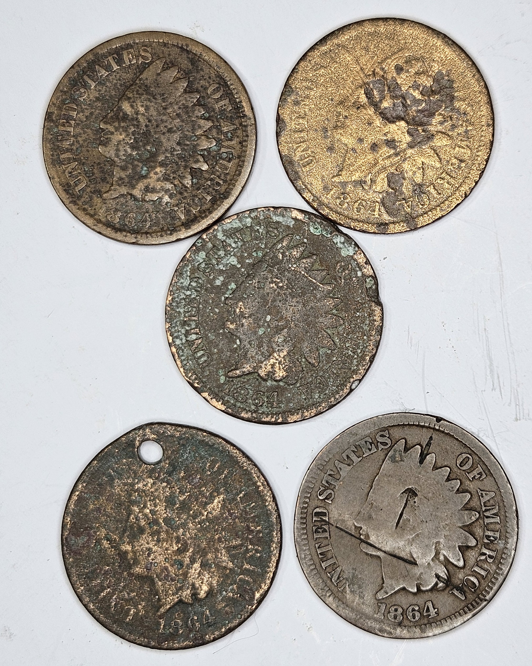 Lot of (5) Low Grade 1864 Indian Head Cents