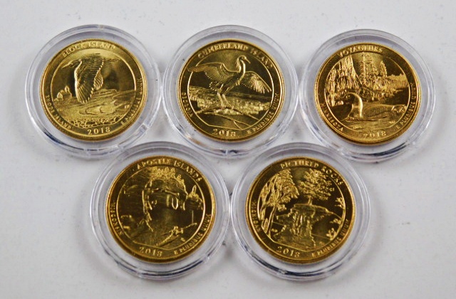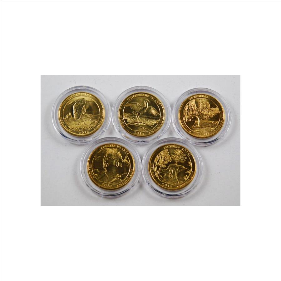 Lot of Five 24K Gold Layered Commemorative Quarters*Painted Rocks, Apostle Islands, Voyageurs & More