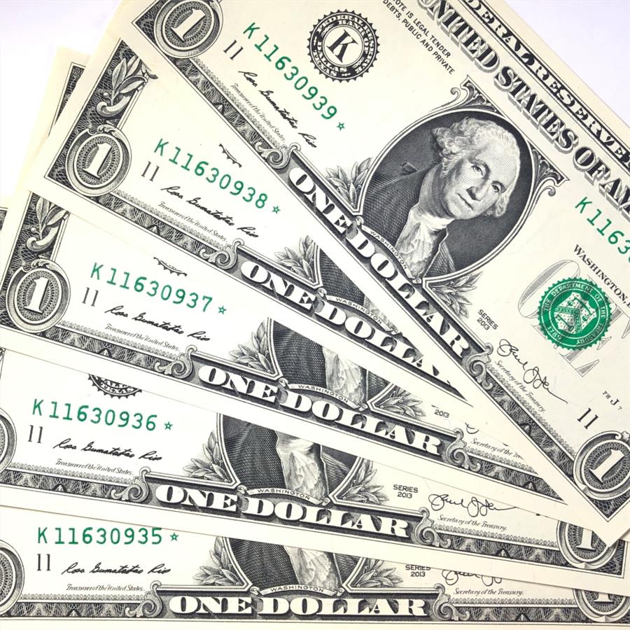Lot of Five (5) CONSECUTIVE NUMBERED $1 Federal Reserve STAR NOTES*Crisp Uncirculated
