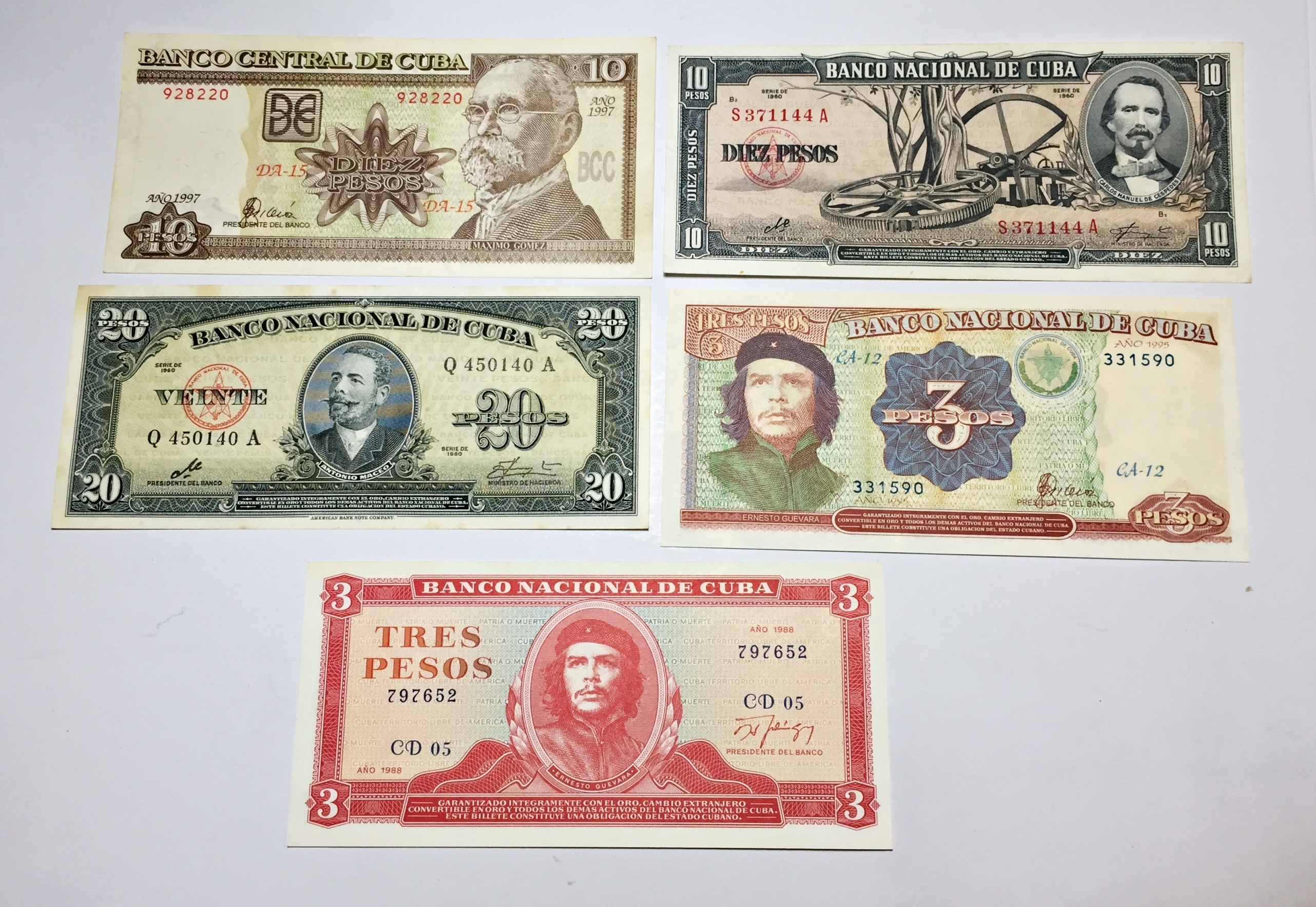 Lot of Five High Grade Cuban Banknotes*Various Denominations and Years