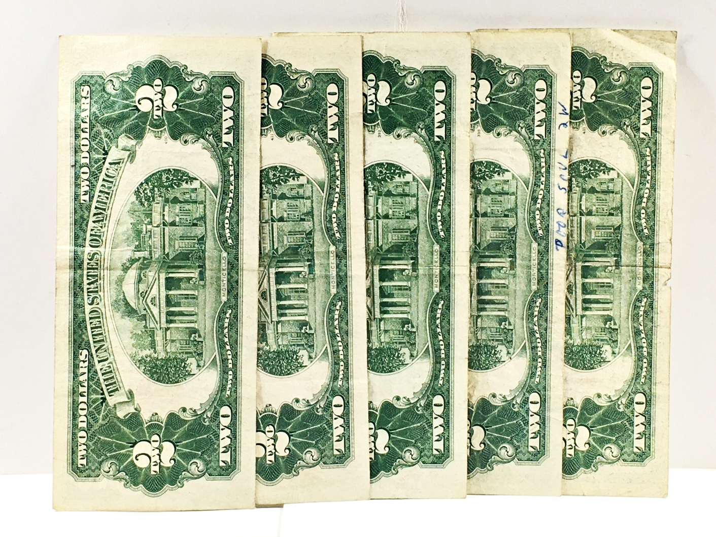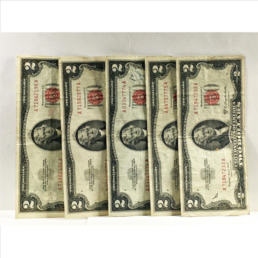 Lot of Five Series 1953 $2 United State Red Seal Notes*Circulated*Crisp Paper