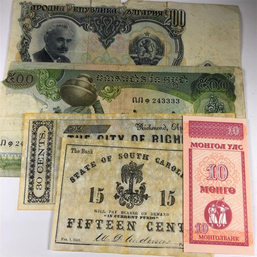 Lot of Five World Notes and US Replicas