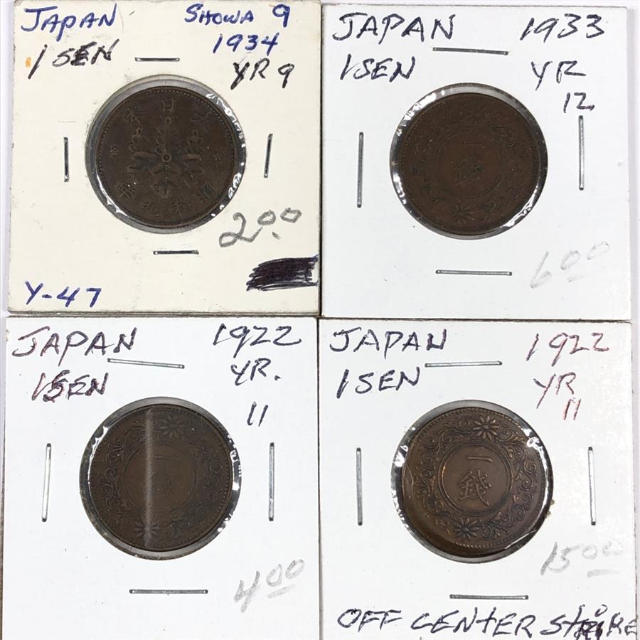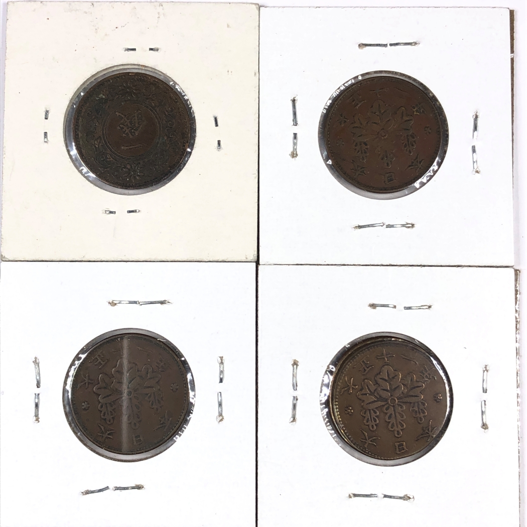Lot of Four (4) Early 1900's Japanese 1 Sen Coins