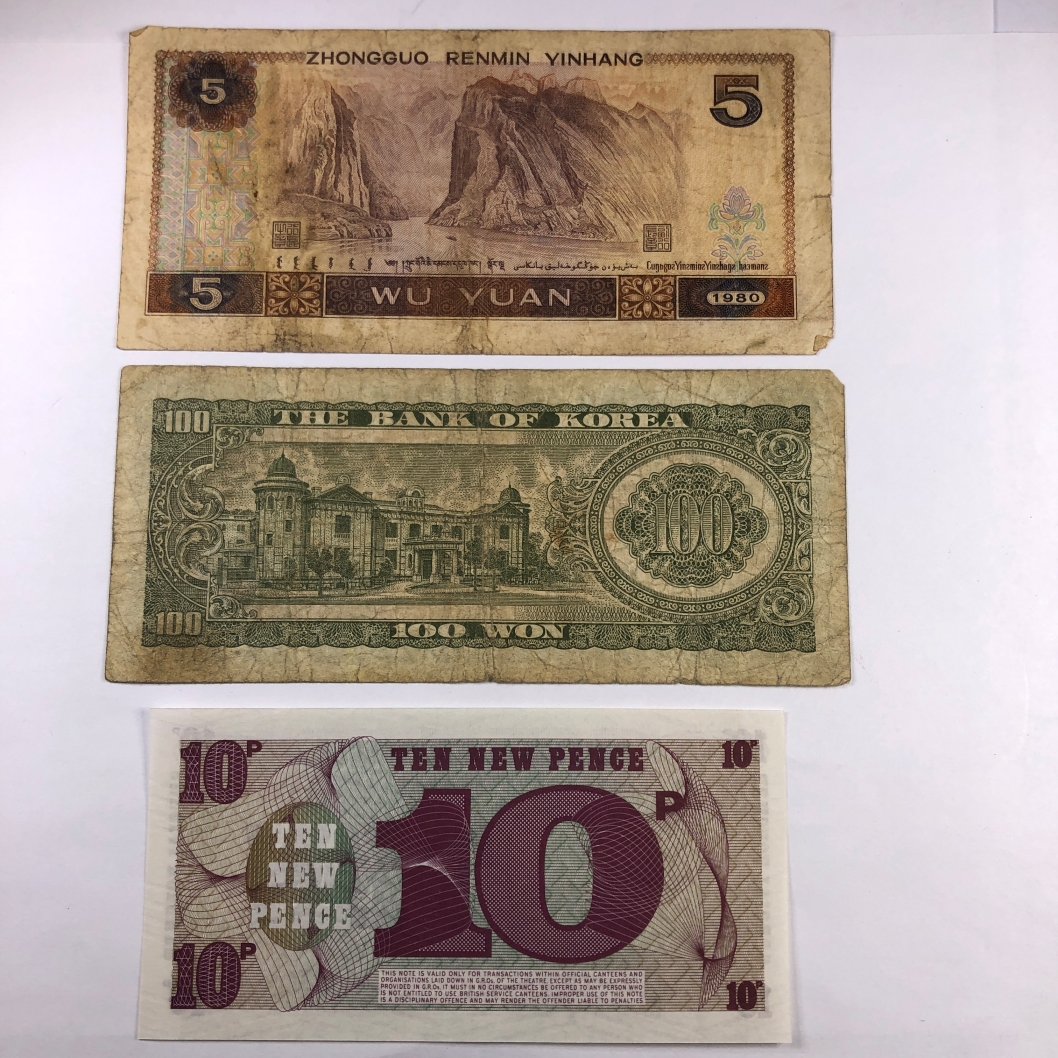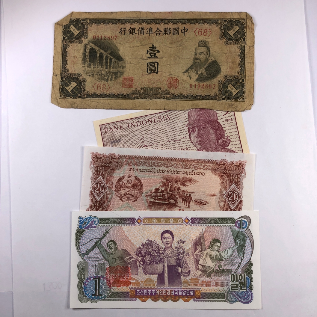 Lot of Four World Notes: Indonesia, Chinese, Laos and North Korea