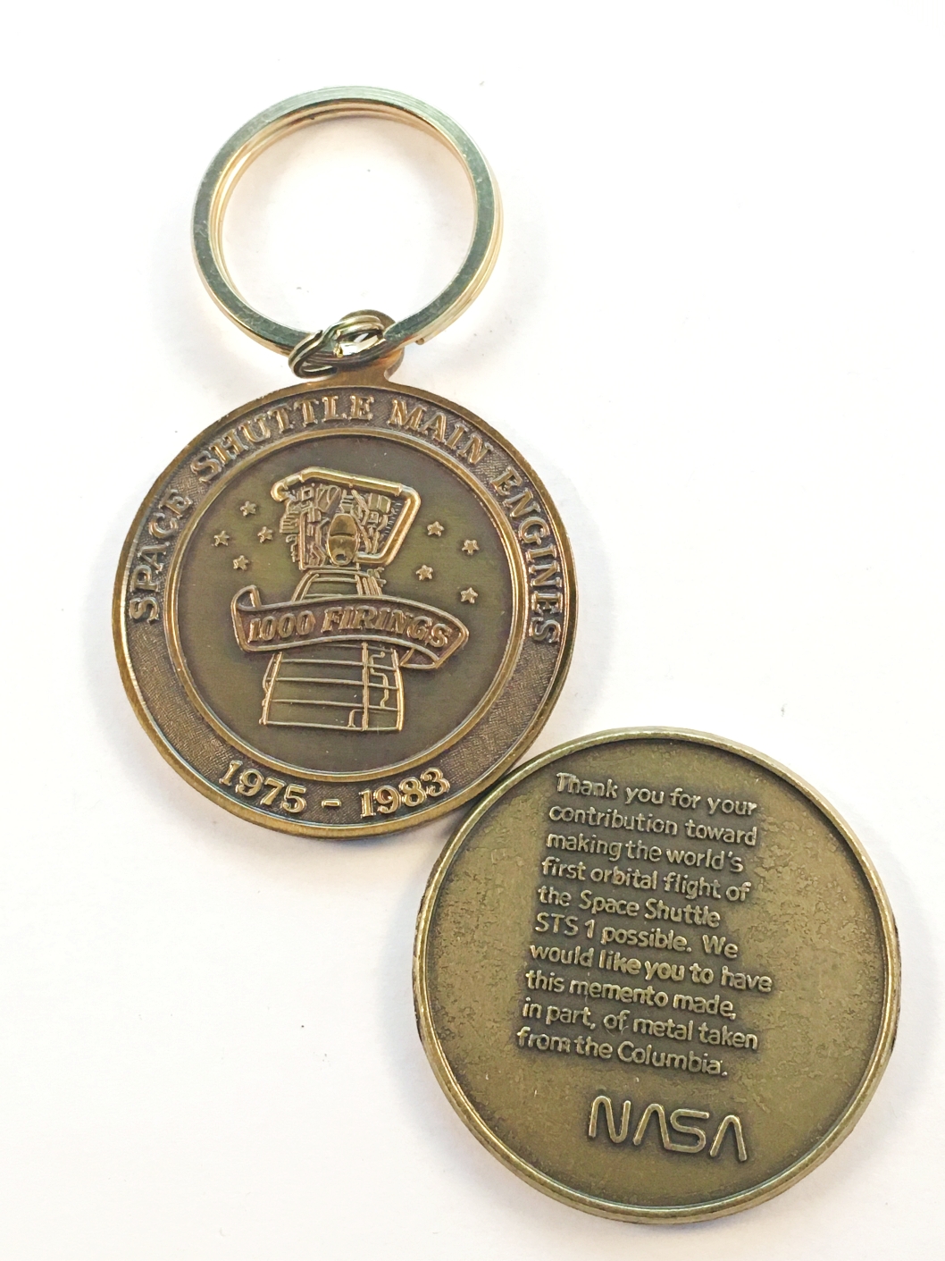 Lot of One Bronze Space Shuttle Key Chain and One Columbia Bronze Medallion