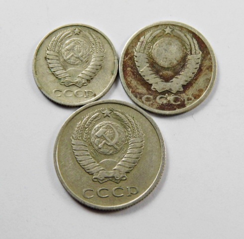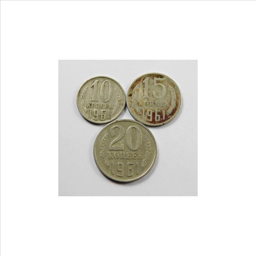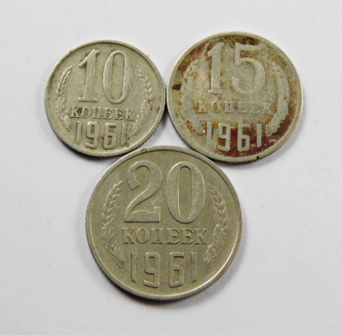 Lot of Three 1961 Russian Coins: 15 Kopeck, 10 Kopeck and 20 Kopeck
