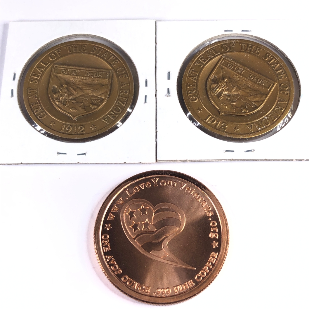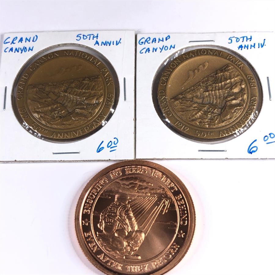 Lot of Three Bronze Medallions: Love Your Veterans and Two 50th Anniversary Grand Canyon Commemoratives