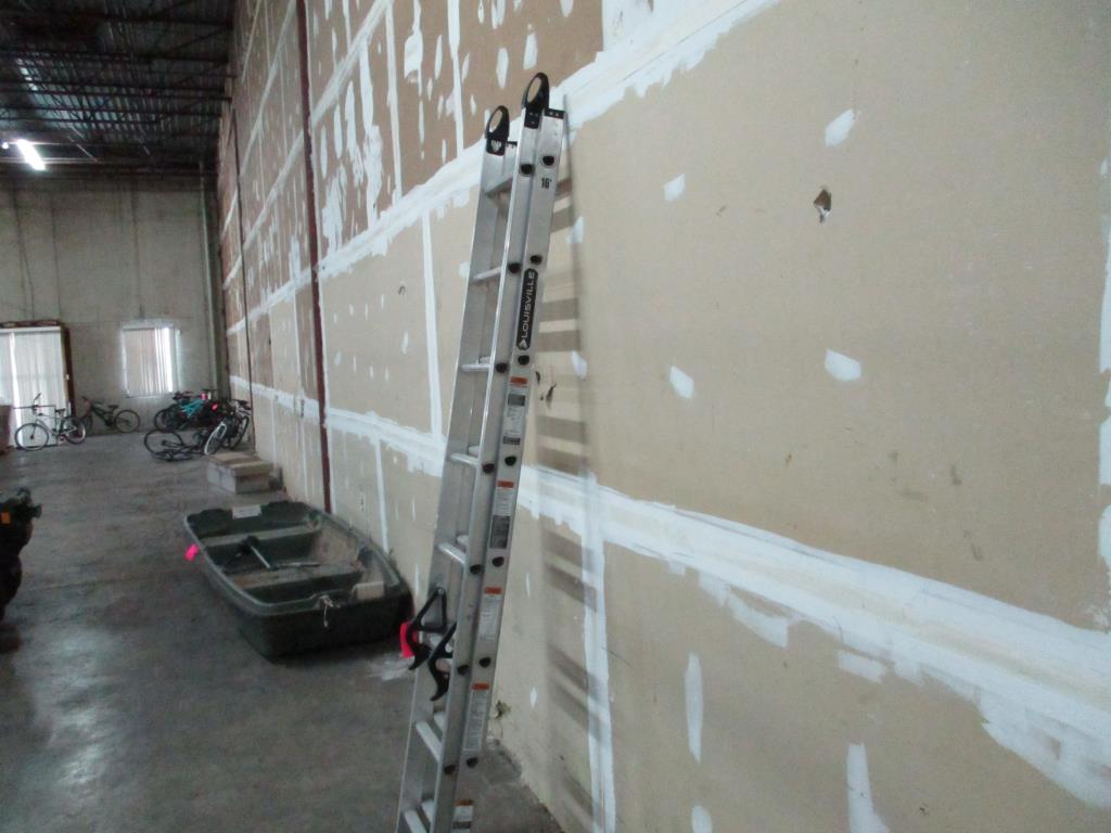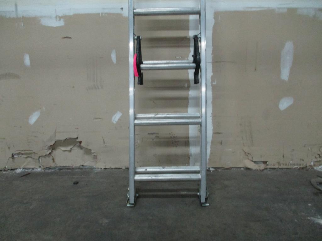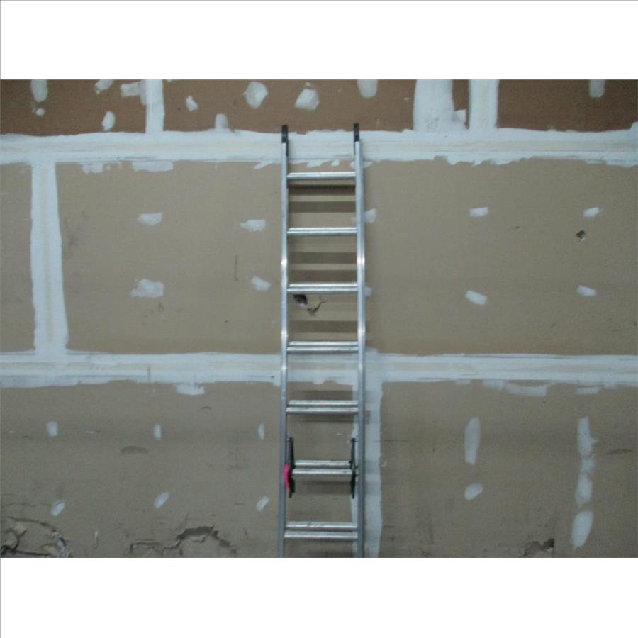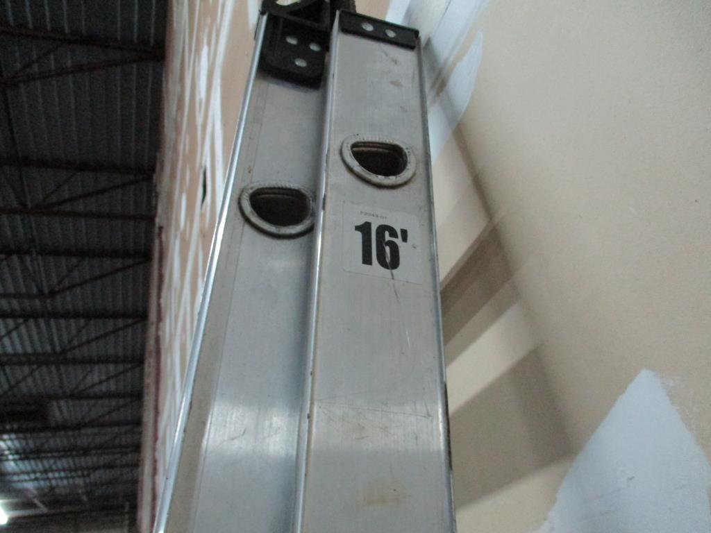 - 16' extension ladder, type 2, year 2021, dual feet, dual locking in place for each level, weight capacity 225 lbs, aluminum, max reach 16' 11", highest standing level 9'4", max working length 13'.