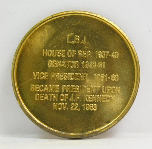 Lyndon B. Johnson Presidential Brass Commemorative Coin/Medallion - 28.5 mm Diameter