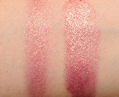 MAC Rose is a very warm-toned, very dark pink with a sparkle finish.