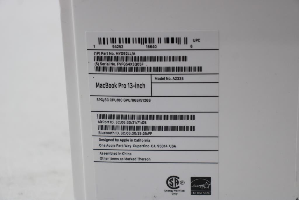 • 8 Gb unified memory, 512 Gb SSD, 13" MacBook Pro with Apple M1 Chip