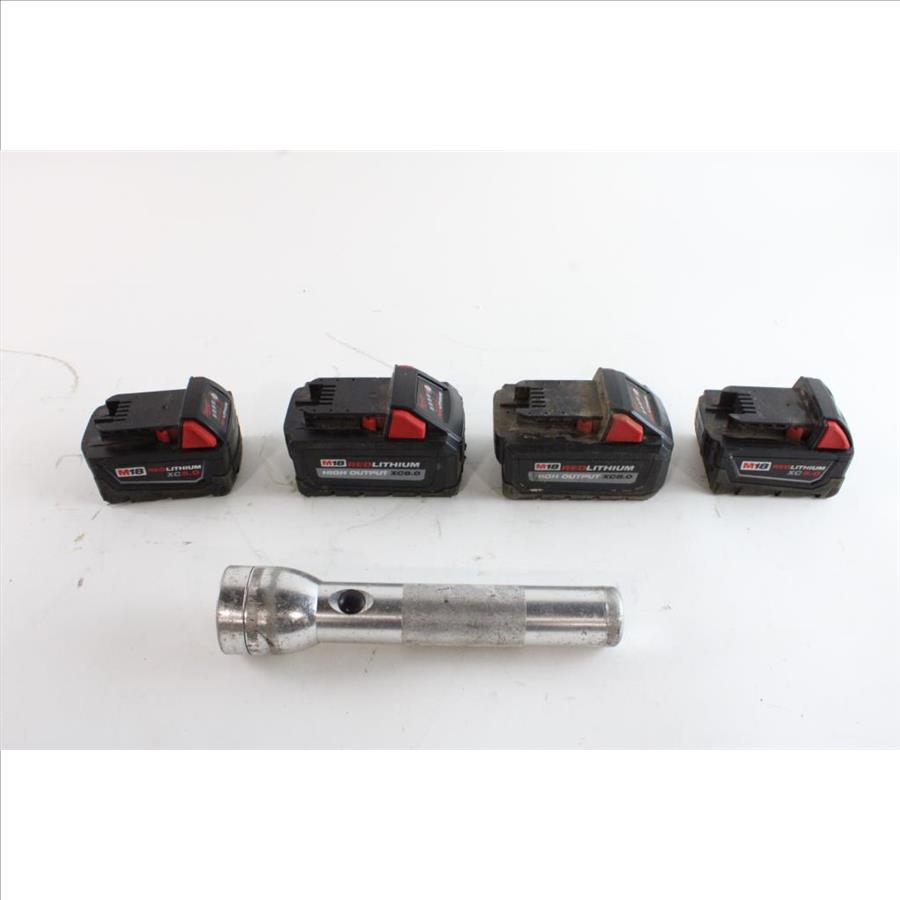 Maglite Flashlight & Milwaukee Batteries, 5 Pieces