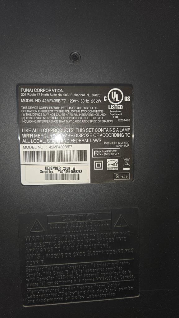 Get a great deal with this online auction presented by PropertyRoom.com on behalf of a law enforcement or public agency client. Model: 42/MF439B/F7 Screen Size: 42" Date of Manufacture: December 2009 Measurements: height 28", width 40", length 10" Base: yes Remote Control: no Power Cord: no Physical Condition: good, dirty, minor screen damage Testing Results: Item was tested for power only and it powered on, displayed menu. Input and output ports were not tested and may be non-functional. Item is sold "As Is".
