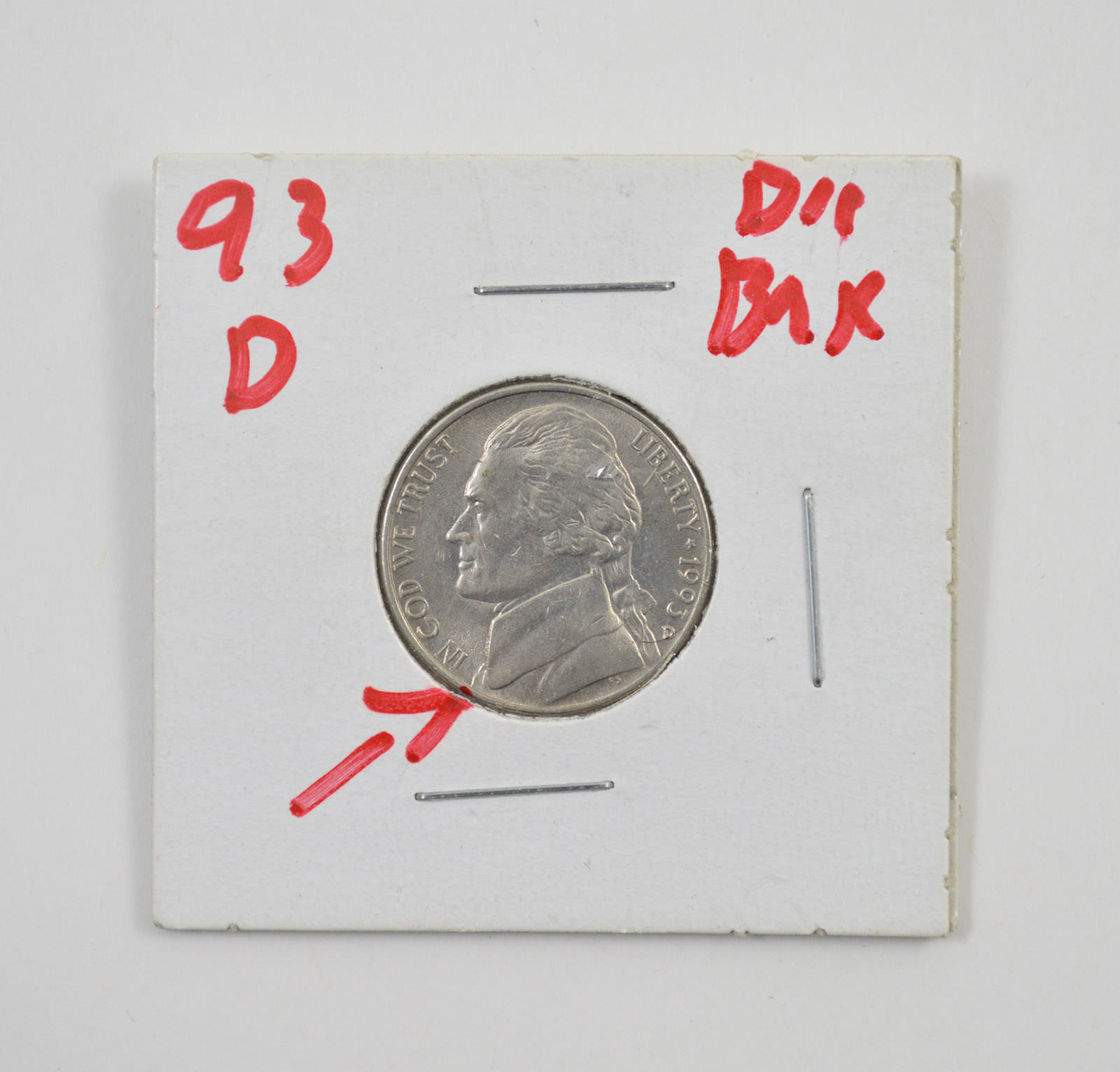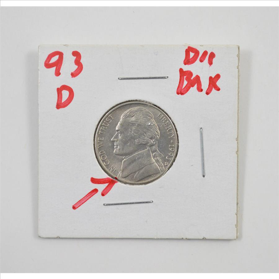 Major Error: 1993-D Jefferson Nickel - Defective Die Obverse
