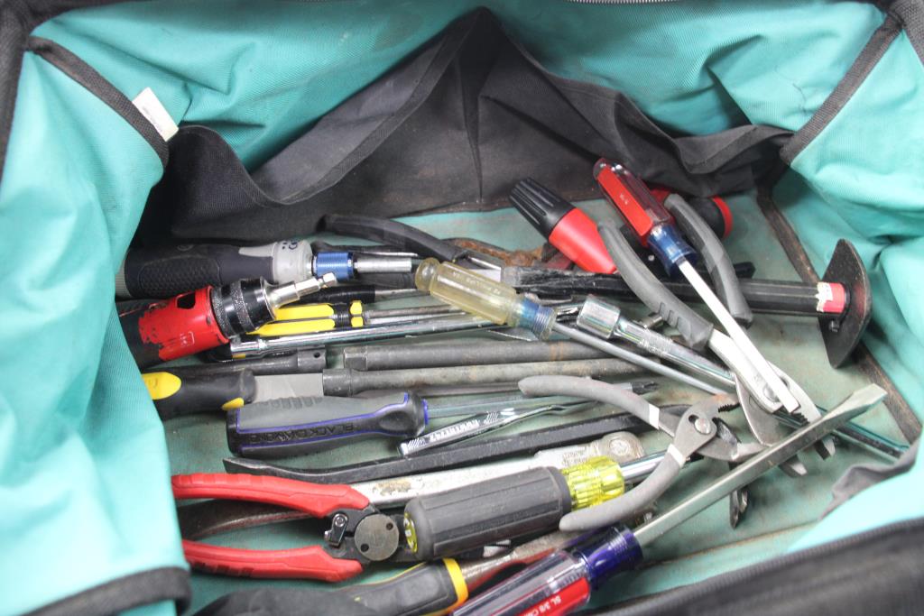 Makita Tool Bag With Klein Tools Multi-Bit Screwdriver, Milwaukee Combination Wire Plier, And More