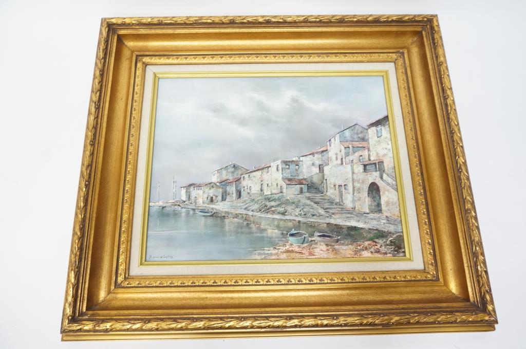 Get a great deal with this online auction for a painting presented by Property Room on behalf of a law enforcement or public agency client. - Oil Based Painting of Waterfront Town
