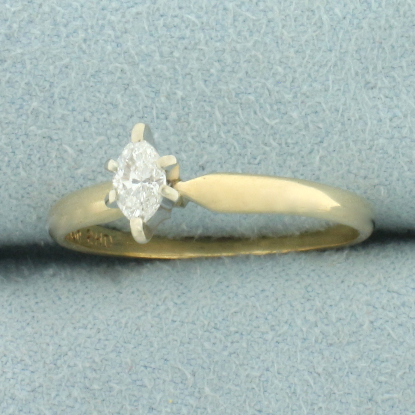 In 14k yellow gold. Contains one high quality 1/4ct Marquise diamond, VS clarity/H color. Band is 1.6mm wide. Size: 8.