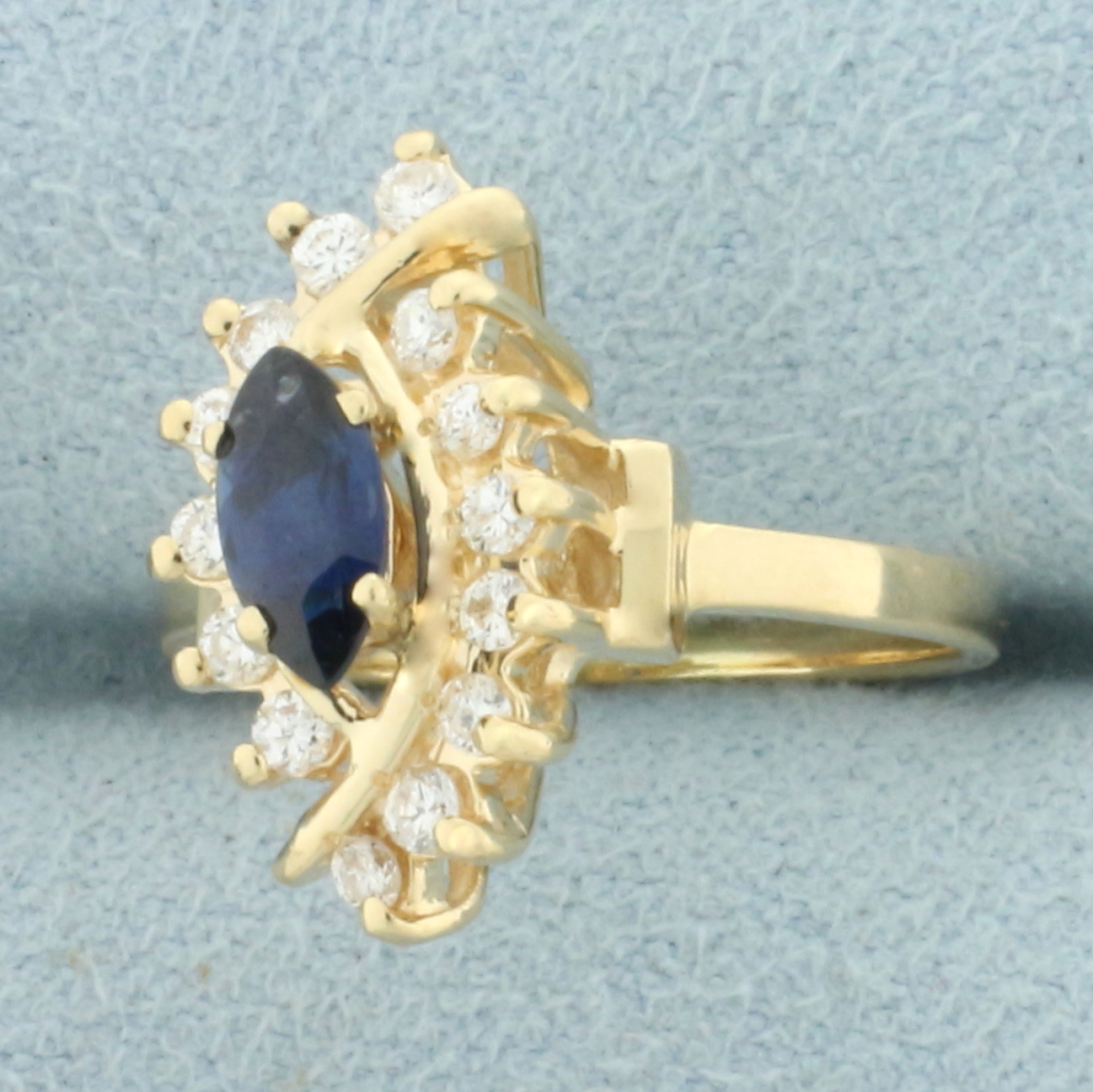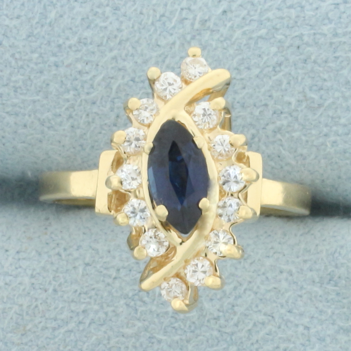 Marquise Sapphire and Diamond Ring in 14k Yellow Gold