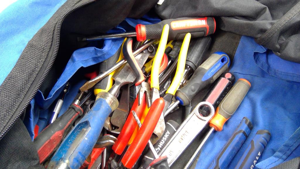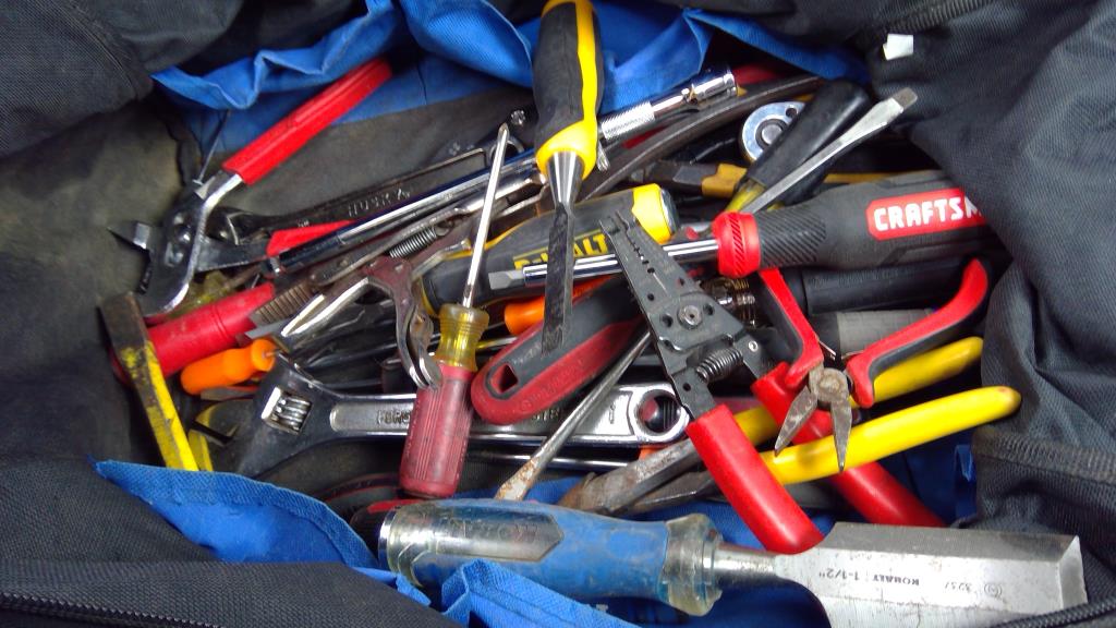 Marshalltown Tool Bag With Kobalt 3/8" Ratchet, Dewalt 1/2" Wood Chisel, And More