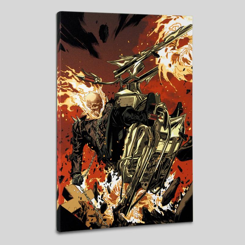 A piece of comic book history, this limited edition, from original art by Leinil Francis Yu, depicts Ghost Rider in a fury of flames. After winning the Wizard's Drawing Board Contest, Marvel Comics hired Leinil Francis Yu to work on the Wolverine series. After his run on Wolverine he moved on to work on Marvel's core X-Men title in 2000. Yu continued to work on other Marvel titles such as Fantastic Four, Ultimate Wolverine vs. Hulk and New Avengers. "Ultimate Avengers 2 #4" is a limited edition numbered giclee on canvas by Leinil Francis Yu presented by Marvel Comics. This piece comes gallery wrapped. Includes Certificate of Authenticity! Measure approx. 18" x 27" (image).
