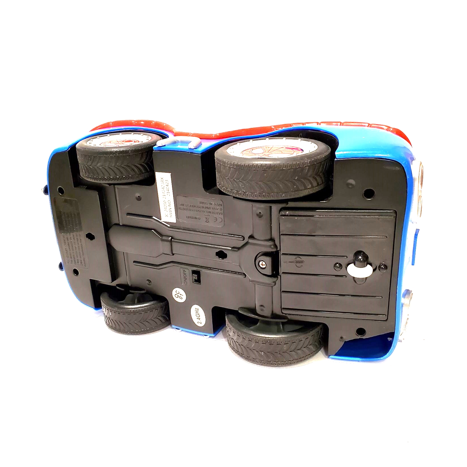 Infrared remote control has the Marvel logo on it and has the same scheme as the vehicle