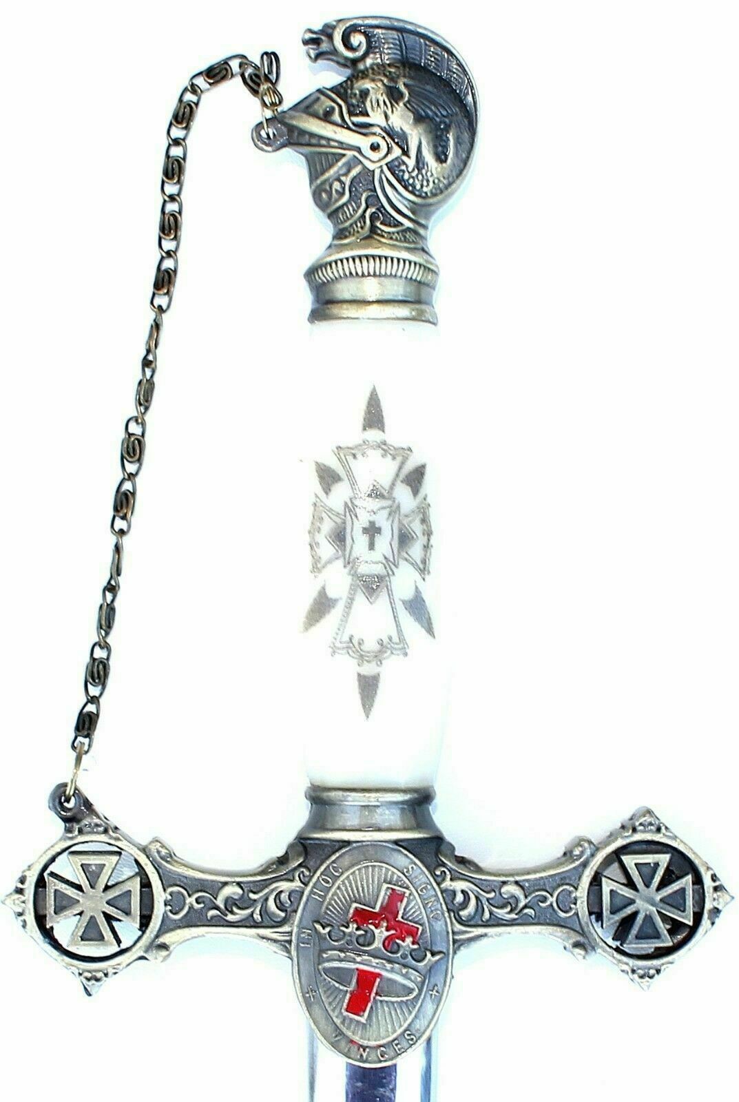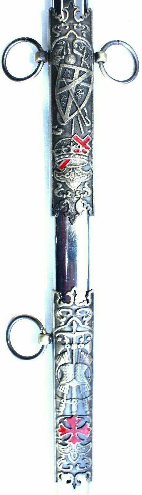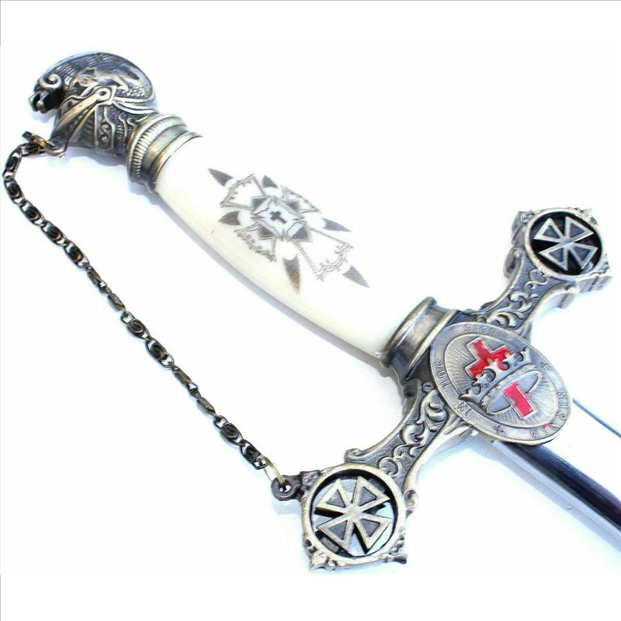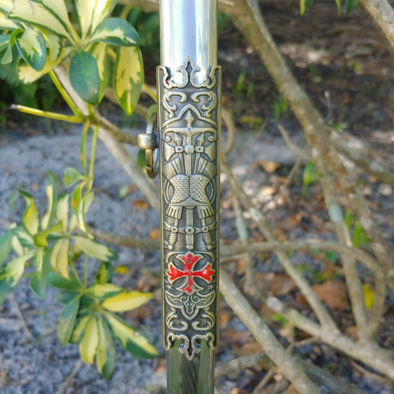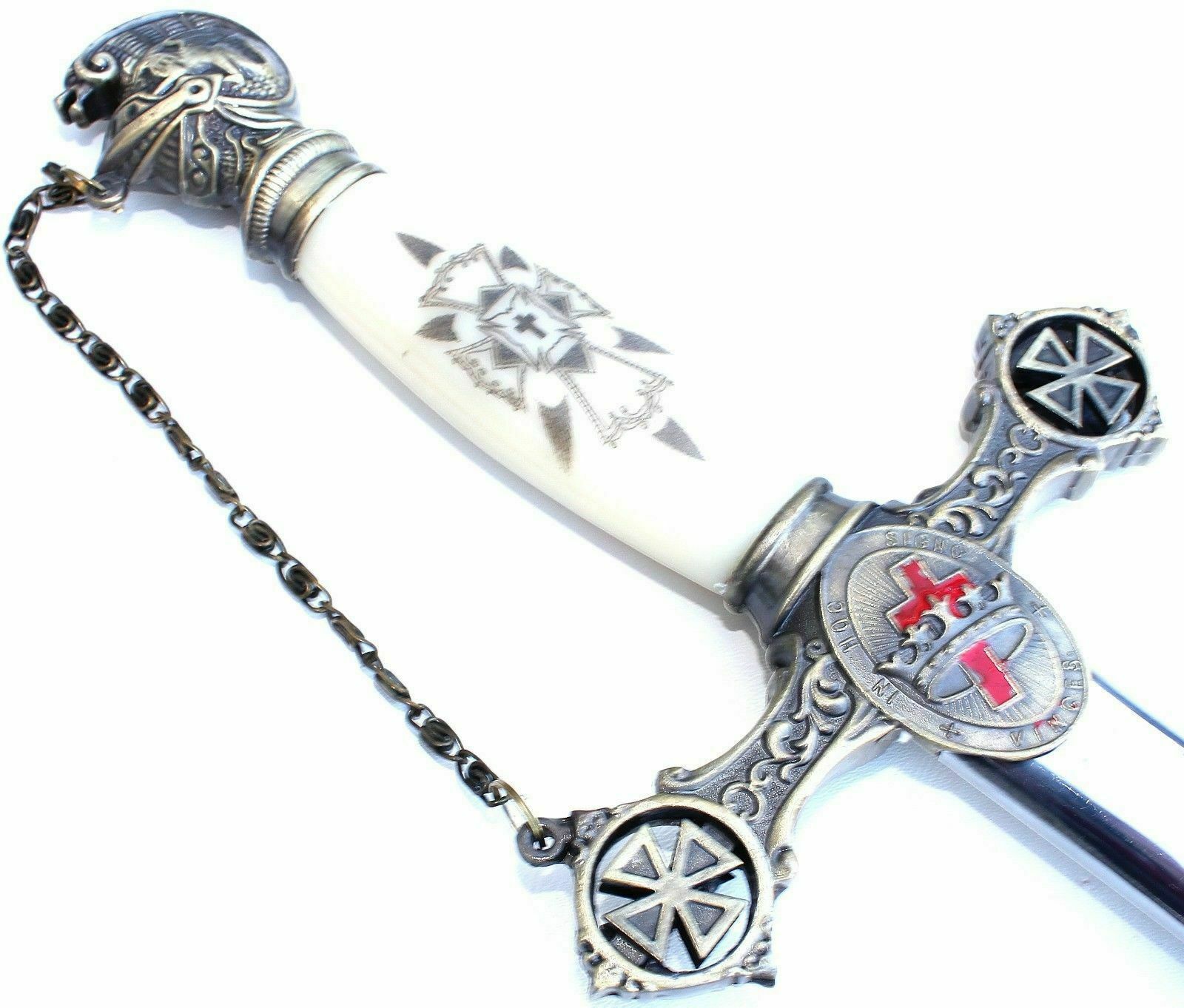 Masonic Knights Templar Ceremonial Sword Mason Antiqued Brown Finish with Chain