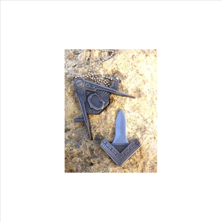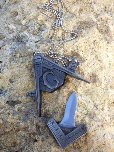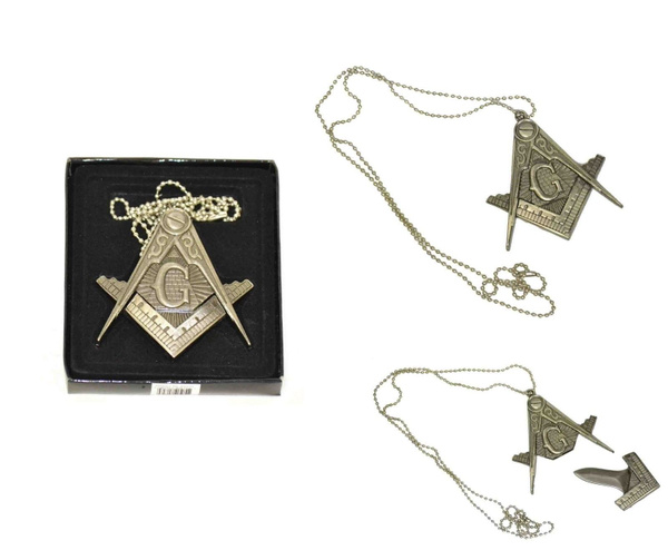 Show your Masonic pride with this pewter-colored cast metal Masonic pendant that hides another secret.