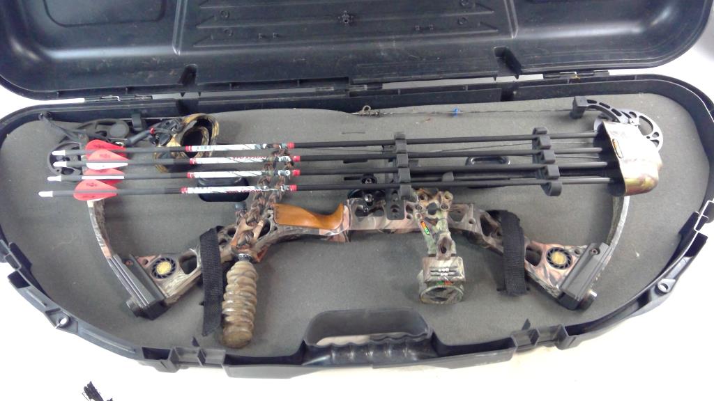 Get a great deal with this online auction presented by PropertyRoom.com on behalf of a law enforcement or public agency client. Model: Mathews Color: Camo Bow Length: 40" Draw Length: Unknown Draw Weight: Unknown Draw: Right hand Accessories: Case, Arrows Cosmetic Condition: Good with scratches Shipment by PropertyRoom to any jurisdiction does not mean this item is legal in such jurisdiction. It is your responsibility to have knowledge of, obey, or comply with all applicable laws relating to this item.