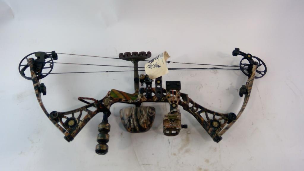 Get a great deal with this online auction presented by PropertyRoom.com on behalf of a law enforcement or public agency client. Model: 866974 Color: Camo Bow Length: 32'' Draw Length: Unknown Draw Weight: Unknown Draw: Right Hand Accessories: None Cosmetic Condition: Good Shipment by PropertyRoom to any jurisdiction does not mean this item is legal in such jurisdiction. It is your responsibility to have knowledge of, obey, or comply with all applicable laws relating to this item.