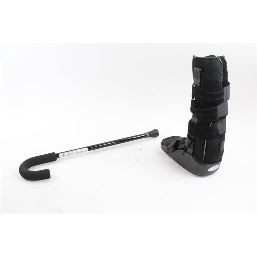 Get a great deal with this online auction for a walking boot and cane presented by Property Room on behalf of a law enforcement or public agency client. - Maxtrax walking boot, Size M