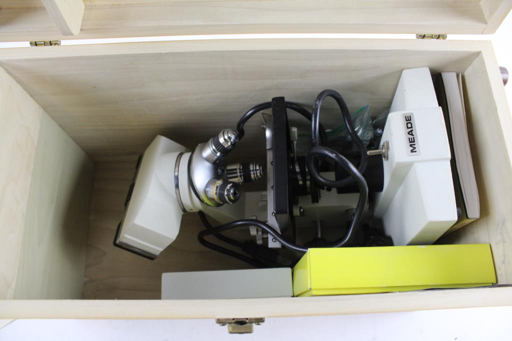 Get a great deal with this online auction for a microscope presented by Property Room on behalf of a law enforcement or public agency client. - Meade microscope 115V/ 60 HZ with extra lenses, lightbulb and more