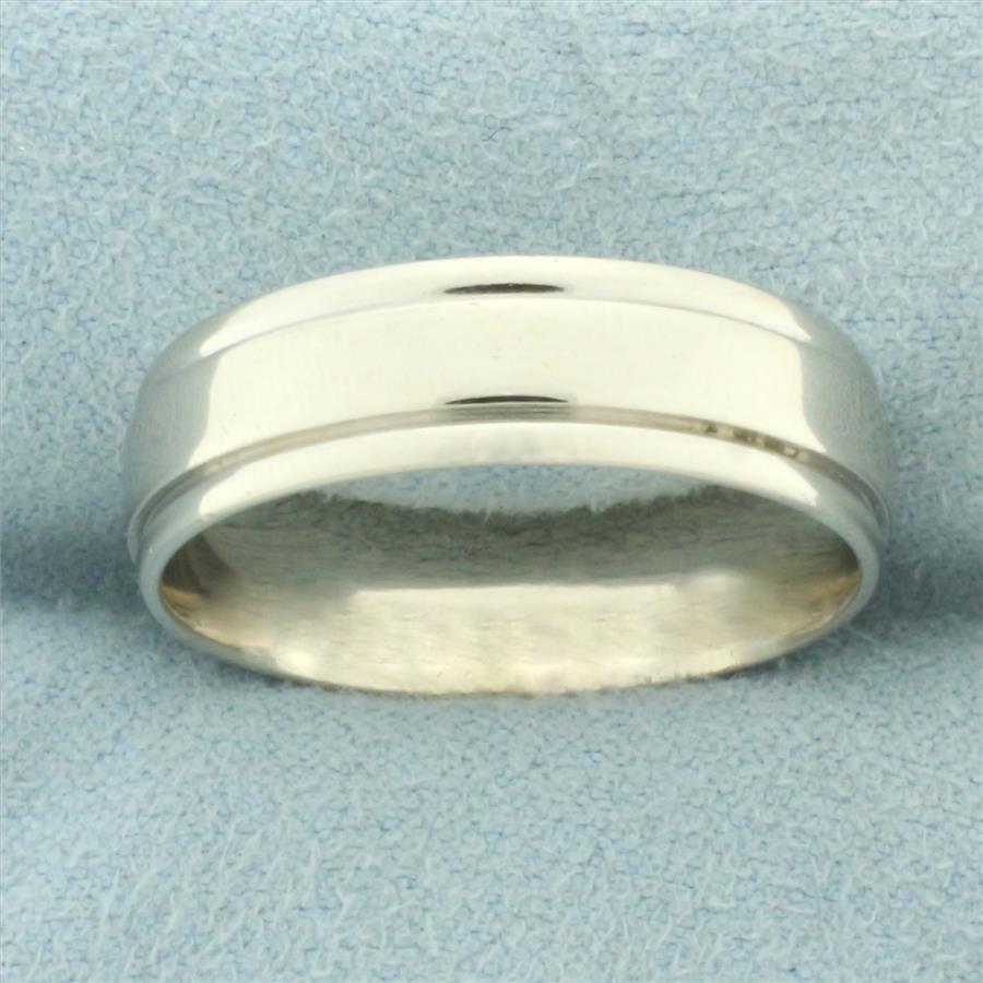 Men's Banded Edge Wedding Band Ring in 14k White Gold