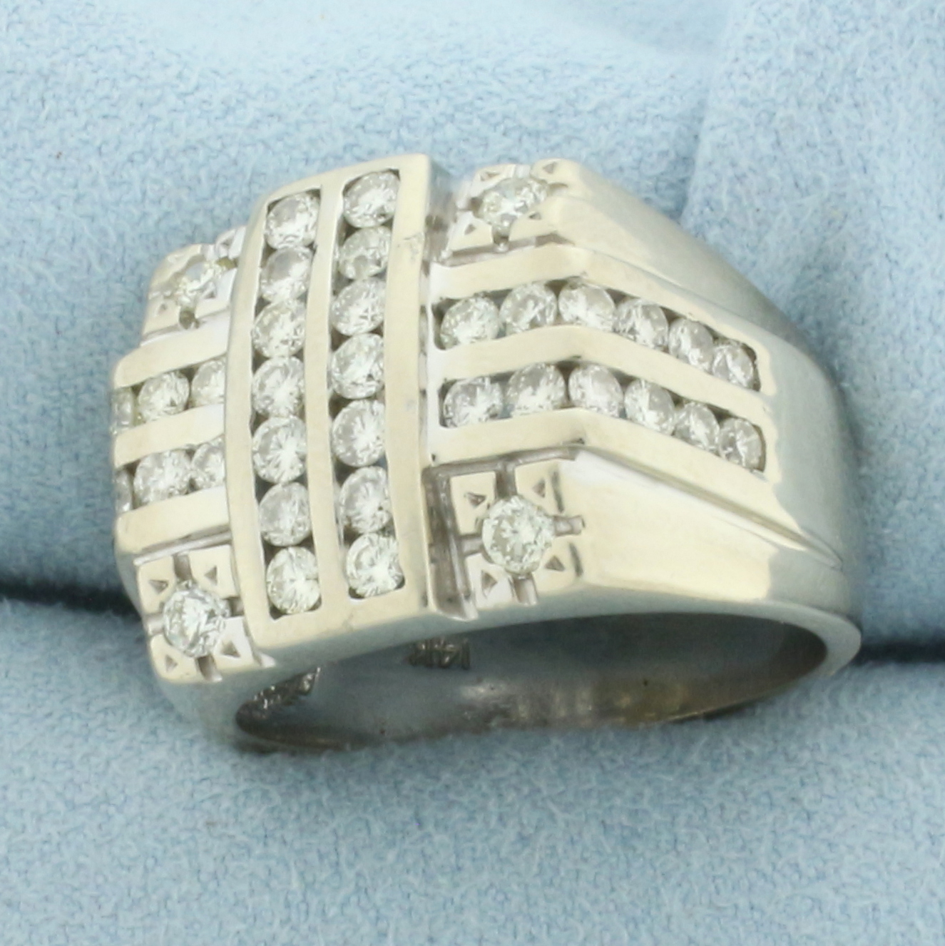 Mens Channel Set Diamond Statement Ring in 14k White Gold
