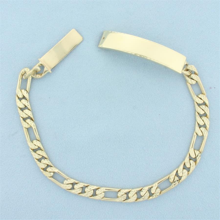 Mens Figaro Name Plate ID Bracelet in 10k Yellow Gold
