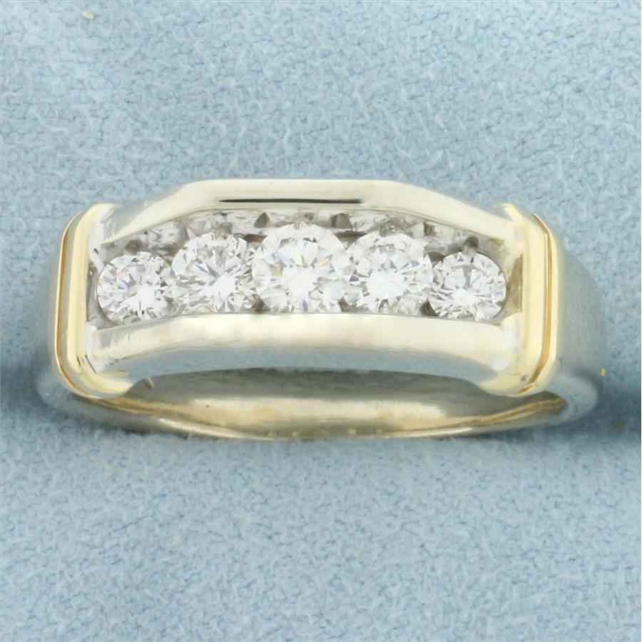 Mens Five Stone Wedding or Anniversary Ring in 14k White Gold