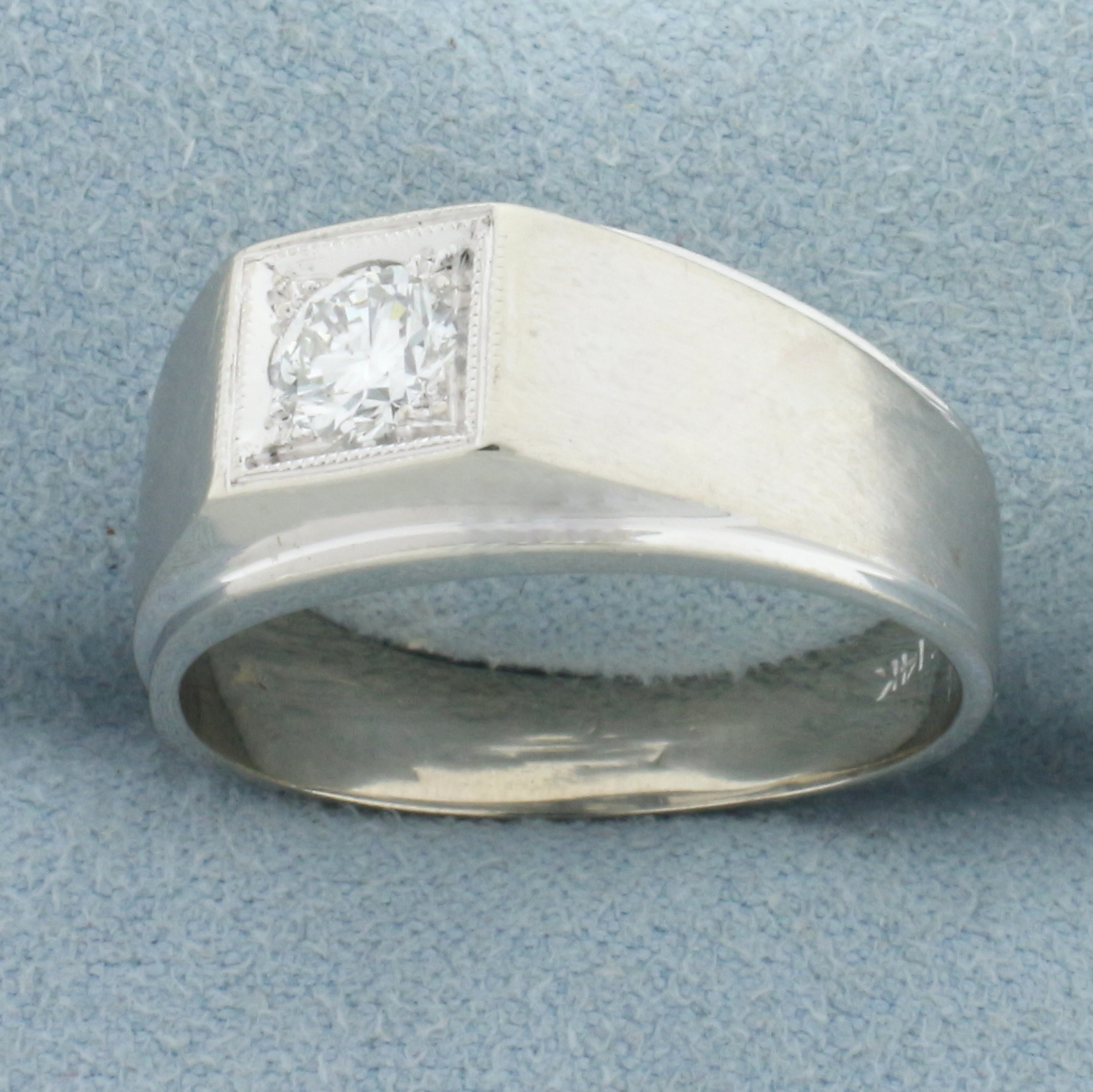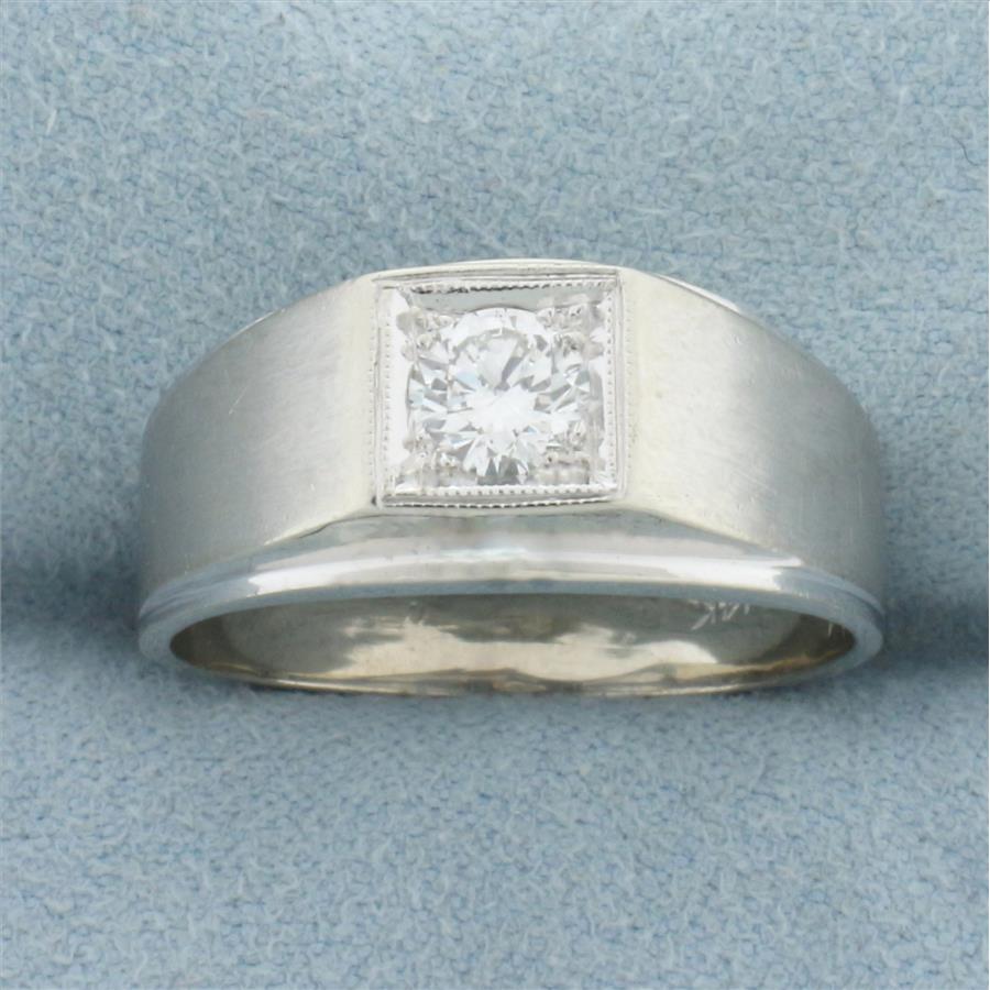 In 14k white gold. Contains one high quality 1/2ct round brilliant diamonds, SI1 clarity, G color, eye clean, great cut for lots of brilliance. Satin finish shoulders. Size: 9.75. 6.8g.