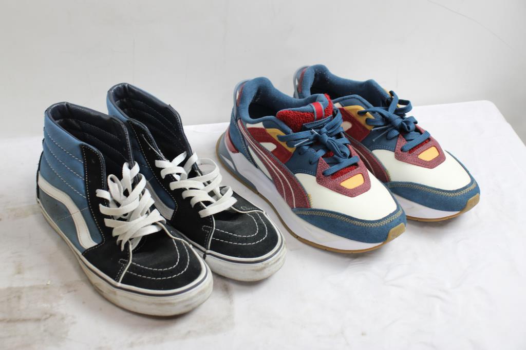 Get a great deal with this online auction presented by PropertyRoom.com on behalf of a law enforcement or public agency client. Style/Model: High top Converse, Air Jordan 1, Mid puma, Aldo Boots Size: Men's 8.5 Color: Blue/Navy, Multi-color, multi-color,Brown Physical Condition: Good Condition: Good