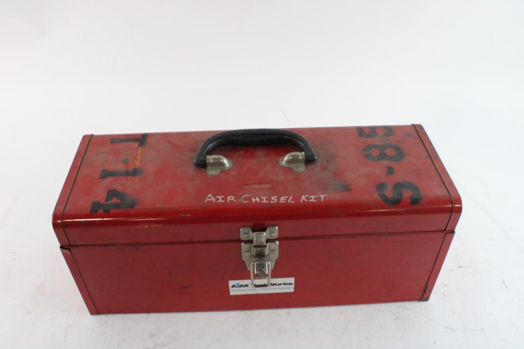 Metal Toolbox With Air Chisel & Bits
