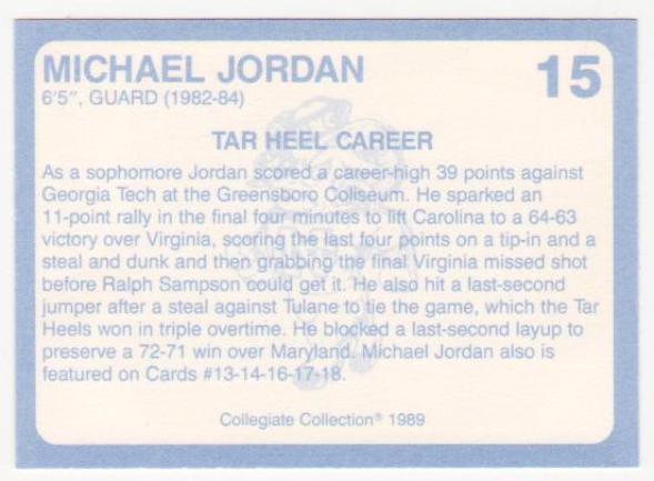 Michael Jordan 1989 North Carolina #15 College Card