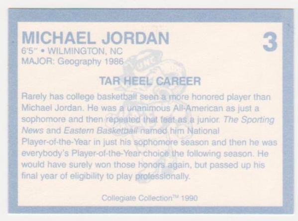 Michael Jordan 1990 North Carolina #3 College Card